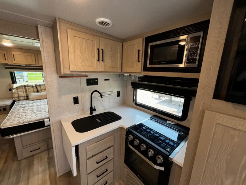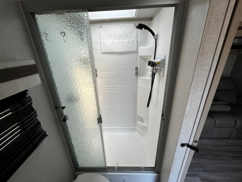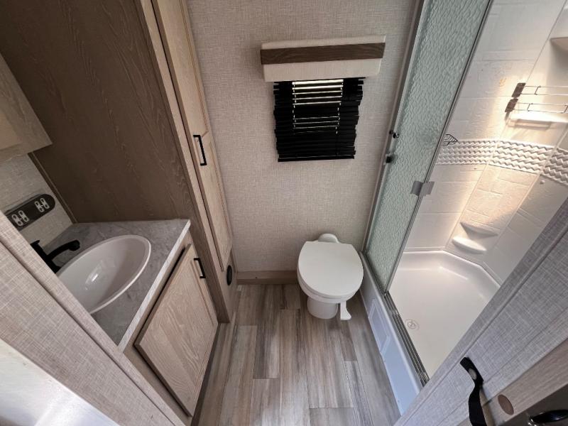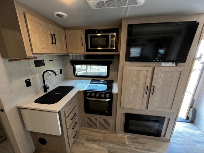 Each Rockwood Mini Lite travel trailer by Forest River is constructed with a fully laminated one-piece walkable roof, sleek frameless windows, and a six-sided full aluminum frame for strength and durability. The 12V thermostatically controlled heated tanks, plus radiant foil in the underbelly, front caps, and slide out floors will allow you to camp well into the colder months, and the 200W roof solar panel will be perfect for a little off-gridding. Each model includes solid surface kitchen countertops, solid wood cabinet doors, night roller shades, plus many more interior features. Having a Teton all in one Wi-Fi booster/LTE prep and antenna on board will allow you to get some work done if it's needed, and the power tongue jack provides hassle-free set up, so you can enjoy more time relaxing!