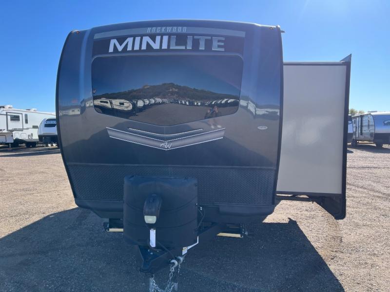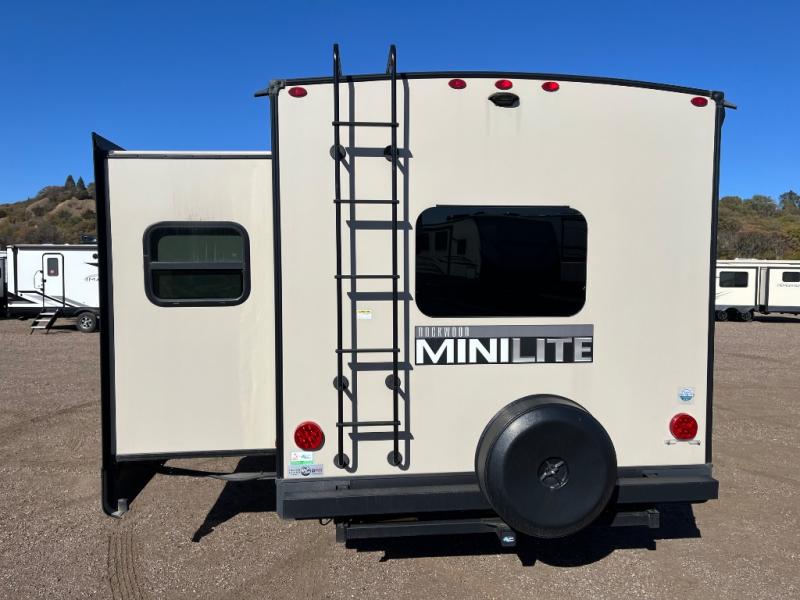 Each Rockwood Mini Lite travel trailer by Forest River is constructed with a fully laminated one-piece walkable roof, sleek frameless windows, and a six-sided full aluminum frame for strength and durability. The 12V thermostatically controlled heated tanks, plus radiant foil in the underbelly, front caps, and slide out floors will allow you to camp well into the colder months, and the 200W roof solar panel will be perfect for a little off-gridding. Each model includes solid surface kitchen countertops, solid wood cabinet doors, night roller shades, plus many more interior features. Having a Teton all in one Wi-Fi booster/LTE prep and antenna on board will allow you to get some work done if it's needed, and the power tongue jack provides hassle-free set up, so you can enjoy more time relaxing!