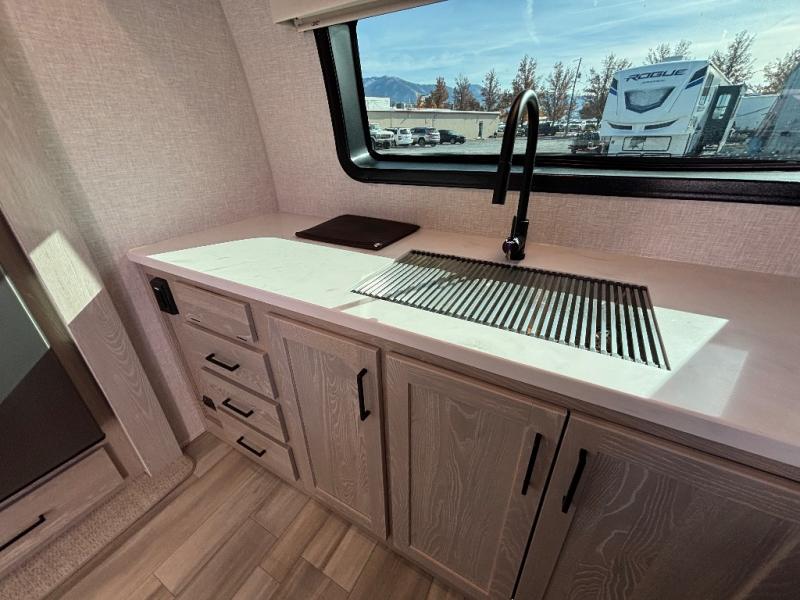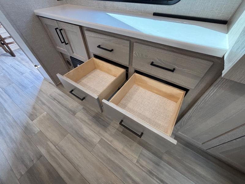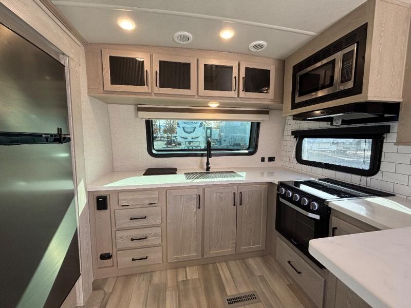 With any Rockwood Signature fifth wheel or travel trailer by Forest River RV, the superior construction includes white or champagne fiberglass sidewalls, a one piece seamless roof membrane, 6-sided aluminum framed walls, floors and roof, plus radiant foil insulation and an enclosed underbelly for use in all types of weather. Some safety standards include Dexter torsion axles, MORryde strut assist steps, and the TST tire pressure monitor system. The interior offers a One Touch OneControl panel with WeRV app control, for lights, awning, slides, water heater and more. You will also appreciate the interior vaulted ceilings, residential soft close doors and drawers, plus solid surface kitchen countertops, a designer kitchen backsplash, plus many more features depending on which Rockwood Signature unit you choose!