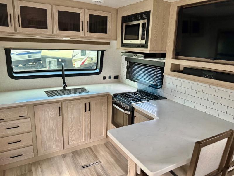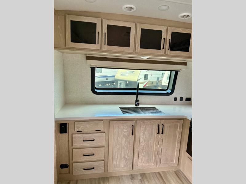 With any Rockwood Signature fifth wheel or travel trailer by Forest River RV, the superior construction includes white or champagne fiberglass sidewalls, a one piece seamless roof membrane, 6-sided aluminum framed walls, floors and roof, plus radiant foil insulation and an enclosed underbelly for use in all types of weather. Some safety standards include Dexter torsion axles, MORryde strut assist steps, and the TST tire pressure monitor system. The interior offers a One Touch OneControl panel with WeRV app control, for lights, awning, slides, water heater and more. You will also appreciate the interior vaulted ceilings, residential soft close doors and drawers, plus solid surface kitchen countertops, a designer kitchen backsplash, plus many more features depending on which Rockwood Signature unit you choose!