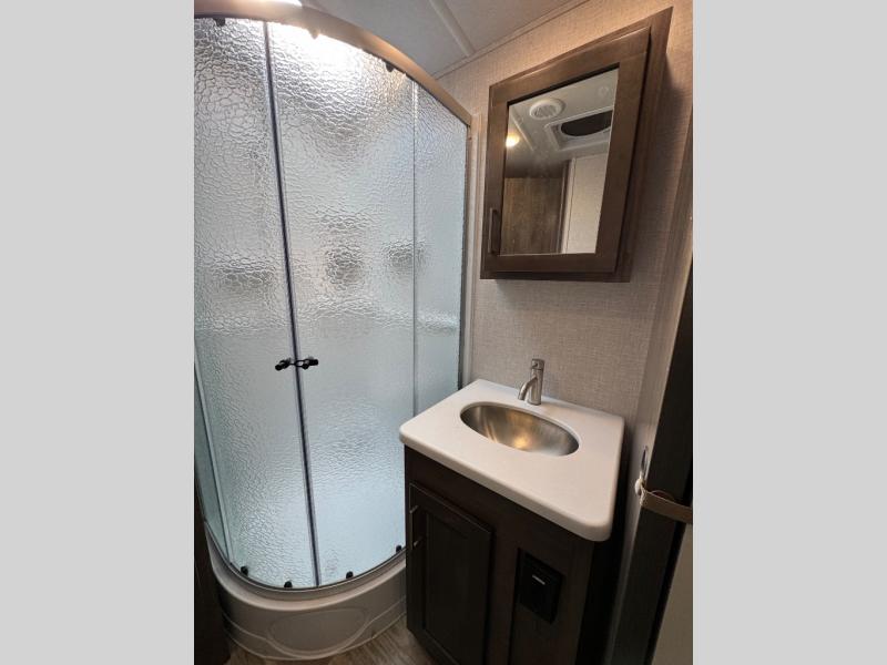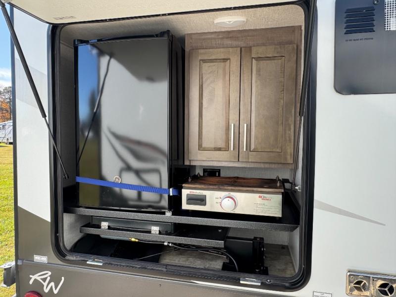 With any Rockwood Signature fifth wheel or travel trailer by Forest River RV, the superior construction includes white or champagne fiberglass sidewalls, a one piece seamless roof membrane, 6-sided aluminum framed walls, floors and roof, plus radiant foil insulation and an enclosed underbelly for use in all types of weather. Some safety standards include Dexter torsion axles, MORryde strut assist steps, and the TST tire pressure monitor system. The interior offers a One Touch OneControl panel with WeRV app control, for lights, awning, slides, water heater and more. You will also appreciate the interior vaulted ceilings, residential soft close doors and drawers, plus solid surface kitchen countertops, a designer kitchen backsplash, plus many more features depending on which Rockwood Signature unit you choose!
