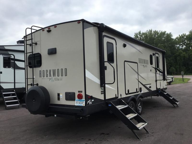 With any Rockwood Ultra Lite fifth wheel and travel trailer by Forest River RV, the superior construction includes a painted fiberglass front cap with clear coat, a full laminated one-piece walkable roof, aluminum truss roof bracing, and a six-sided full aluminum frame. Some safety standards include Dexter torsion axles, MORryde strut assist steps, and the TST tire pressure monitor system. The interior offers the OneControl panel with WeRV app control, screwed and glued, solid wood cabinet doors and drawers with hidden hinges, metal drawer glides and residential or upgraded hardware. You'll also find solid surface kitchen countertops, designer kitchen backsplash, plus many more features depending on the Rockwood Ultra Lite you choose!