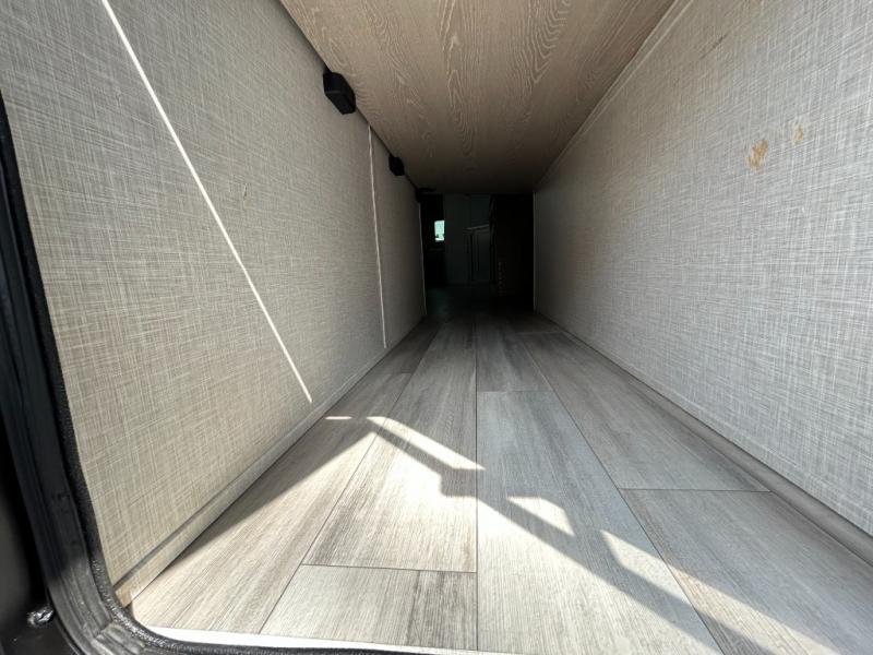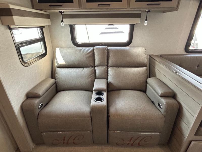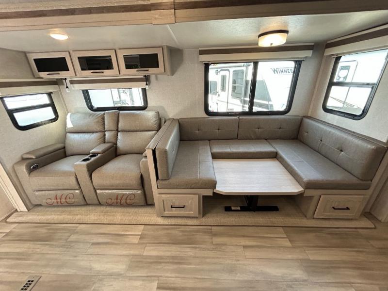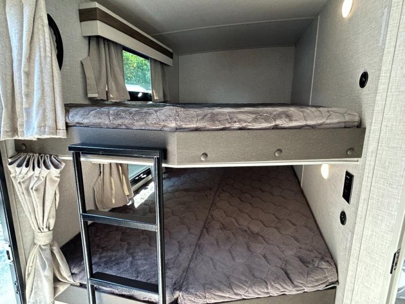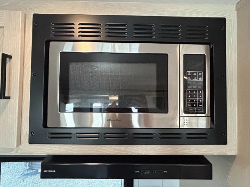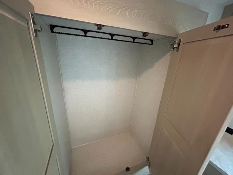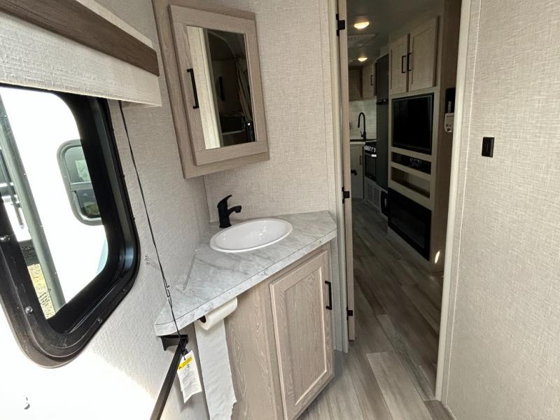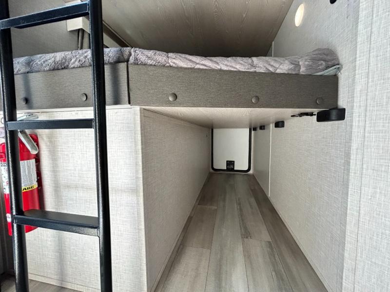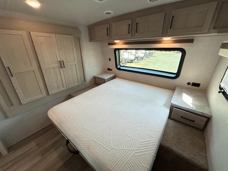 Looking for a trailer that sleeps eight, allows you to cook indoors or outdoors, and offers dual entry for convenience when you travel with a bigger group? This trailer provides for those wants and needs, and offers even more! The outside camp kitchen gives you more choices when feeding the masses along with the outside griddle, and the interior kitchen includes an L-shaped area for the cook to have their own space with full amenities including a counter extension and a walk-in pantry to bring along everything they need. The full bathroom will keep everyone refreshed, and the theater seating along with the U-shaped dinette offer seating inside to enjoy the LED TV and fireplace. There is plenty of storage found throughout the interior, and along the exterior you will find several places to stow your outdoor items including in the drop frame storage.