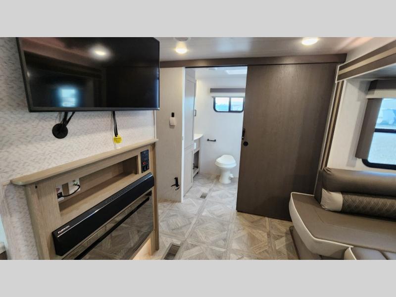 Enjoy years and years of memories with any one of these Forest River Salem travel trailers! They are built with a one piece, SuperFlex roof, a powder coated I-beam frame, and an aerodynamic front radius profile for an easier tow. The triple seal slide out system prevents water from seeping inside and keeps it outside where it belongs. The Best In Class Value Package includes upgraded designer furniture, seamless countertops with no T-mold, and two zone residential soundbars with FM, Bluetooth, HDMI and USB. You will also appreciate the heated and enclosed Accessi-Belly with removable underbelly panels, the power tongue jack with an LED light, and the designated CPAP storage. Some new upgraded features include: kitchen backsplash, fireplaces with mirror fronts, bedroom bedding, 12V refrigerator, now with glass doors, and so much more!