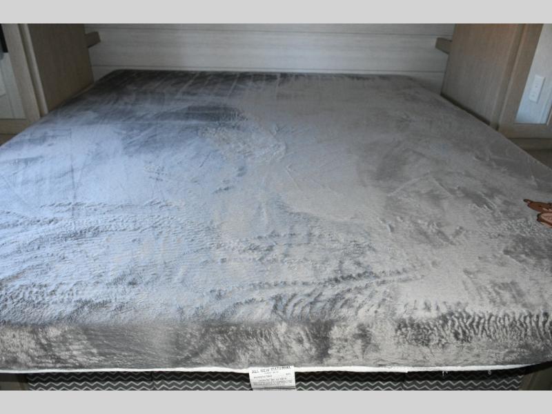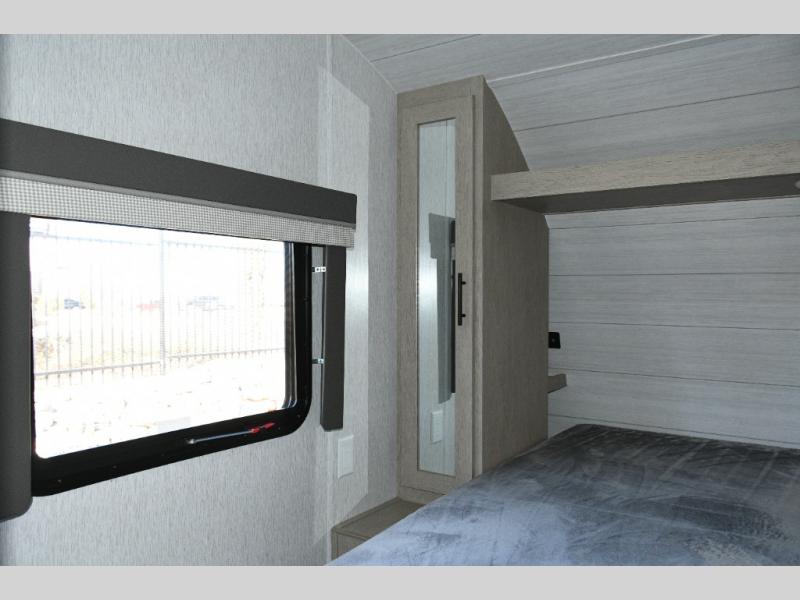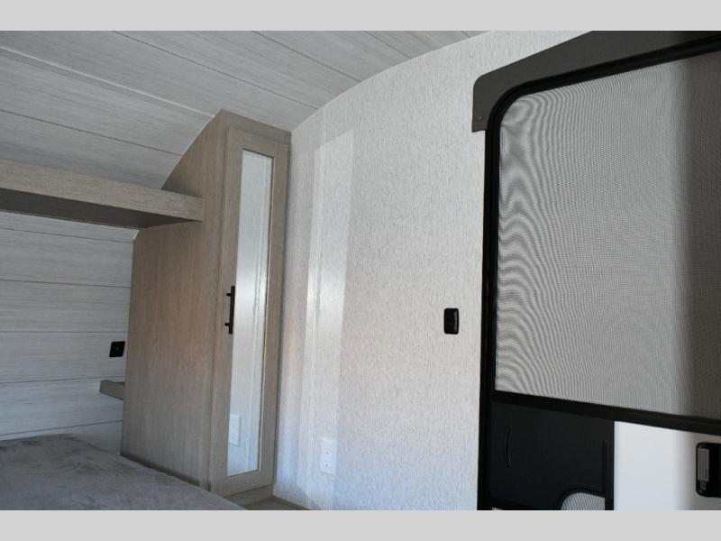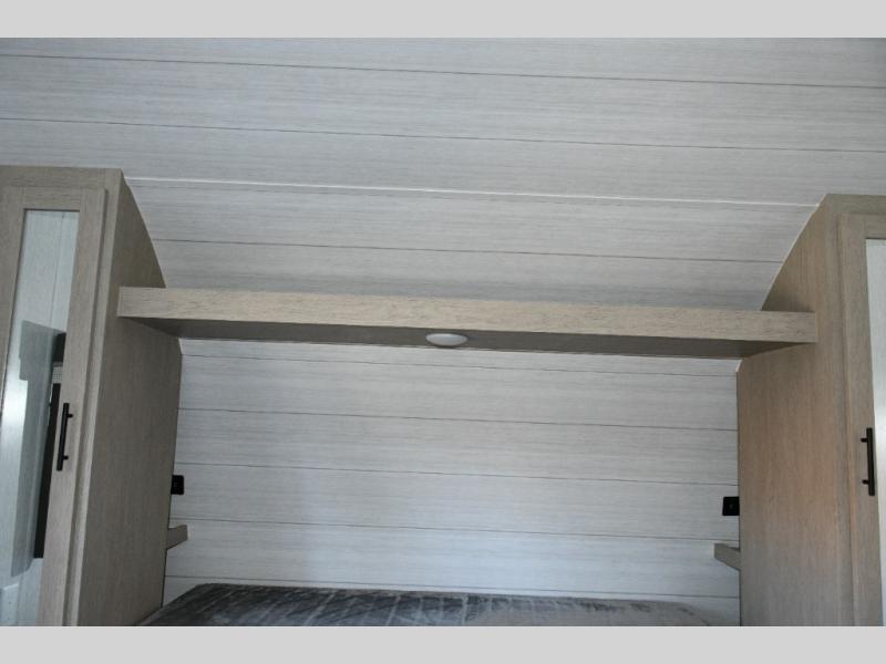 At the end of the day, retreat to your private front bedroom, complete with a custom king bed, dual wardrobes, and a convenient overhead shelf for your essentials. With a second exterior door leading directly into the bedroom, you’ll love the added privacy and easy access this design provides.