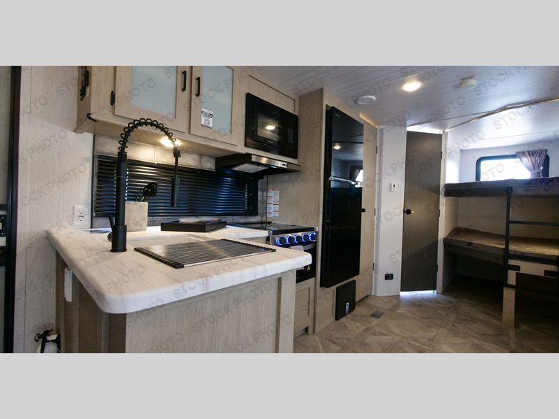 As you get away for the weekend to enjoy nature's beauty, you'll be so glad that you chose to bring this Salem travel trailer along! The full kitchen with its three-burner cooktop and walk-in pantry will allow you to prep meals whenever it is convenient for you, and the large slide that contains the extremely functional Versa Lounge will deliver extra space to the interior so that you don't feel cramped. Your kids will be able to invite a friend or two because of the double-size bunks that are in the back, and since these bunks are right next to the full bathroom with a walk-in shower, your kids won't have to search far in the middle of the night.