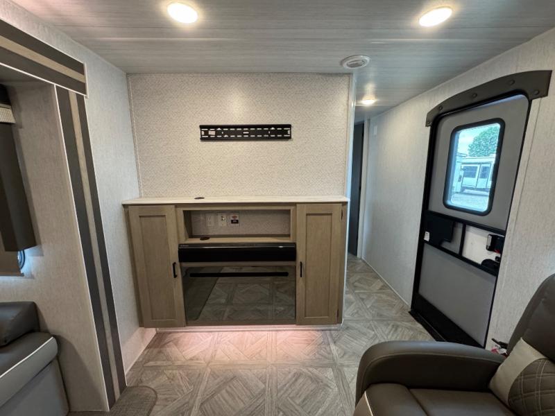 Enjoy years and years of memories with any one of these Forest River Salem travel trailers! They are built with a one piece, SuperFlex roof, a powder coated I-beam frame, and an aerodynamic front radius profile for an easier tow. The triple seal slide out system prevents water from seeping inside and keeps it outside where it belongs. The Salem Best In Class Value Package includes upgraded designer furniture, seamless countertops with no T-mold, and two zone residential soundbars with FM, Bluetooth, HDMI and USB. You will also appreciate the heated and enclosed Accessi-Belly with removable underbelly panels, the power tongue jack with an LED light, the designated CPAP. Some new upgraded features include: kitchen backsplash, fireplaces with mirror fronts, bedroom bedding, 12V refrigerator, now with glass doors, and so much more!
