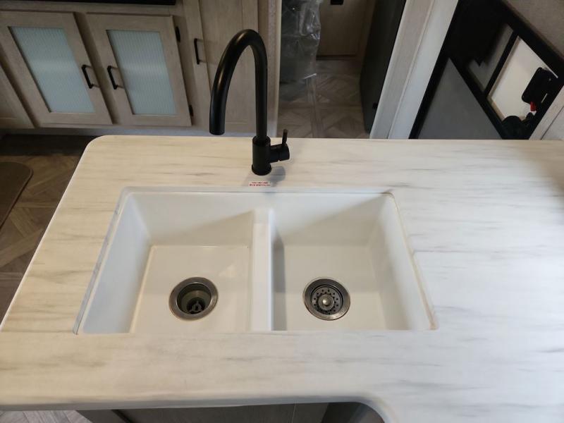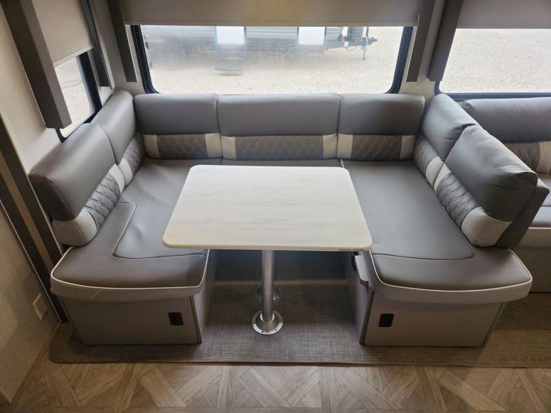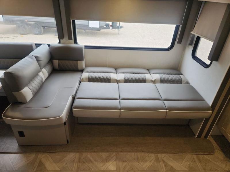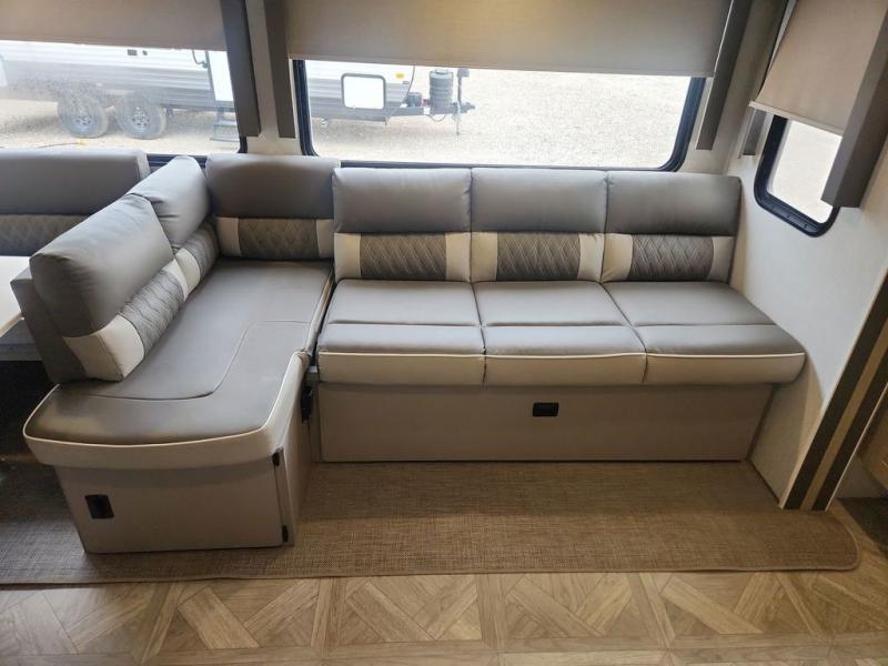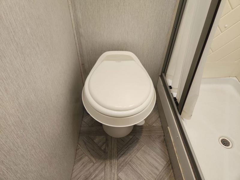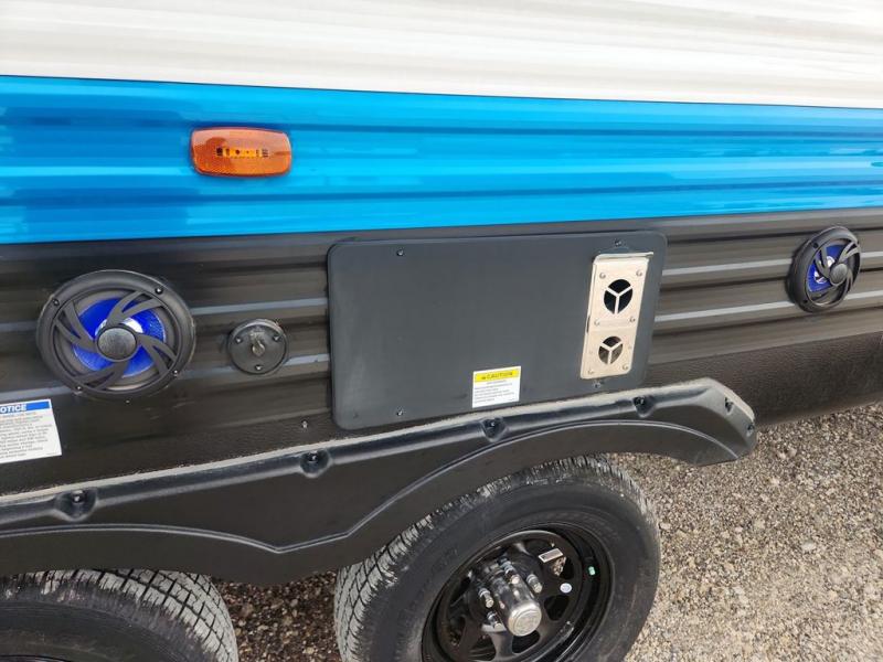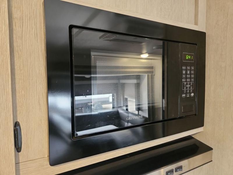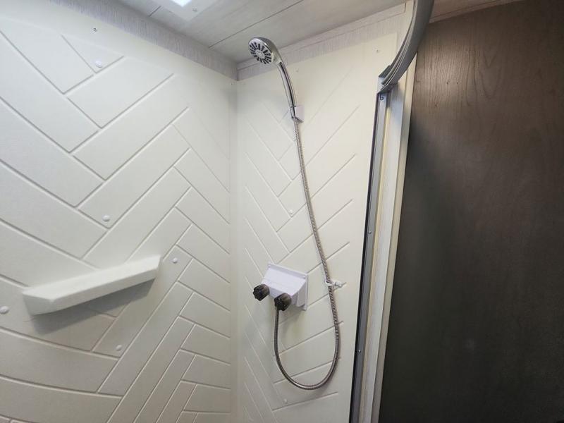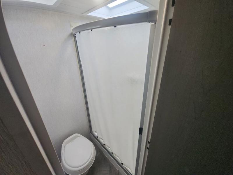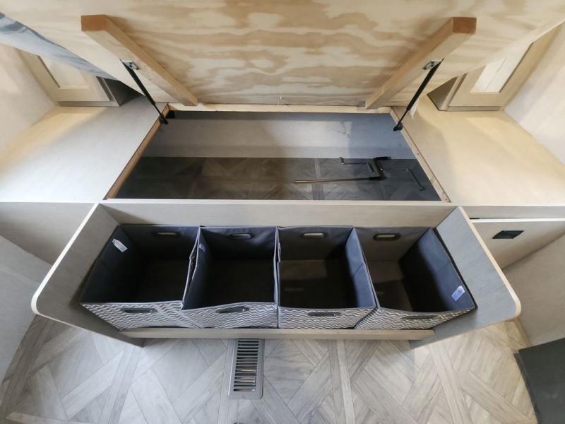 The perfect unit for your larger family to enjoy camping together, or for those that enjoy taking along extended family and/or friends. You will find plenty of space in this large single slide bunk model with stacked double beds in the rear corner next to an opposite rear corner bathroom for convenience. The slide offers a bit more floor space when everyone is inside relaxing. A private front bedroom offers a quiet retreat for two with bedside wardrobes and an overhead shelf for your things, plus there is a large pass-through storage compartment for all of your outdoor camping gear as well. The 16' awning is great for providing an outdoor living space to enjoy, and when indoors the panoramic windows in the main slide will make you feel like you've brought a little outdoors inside with you!