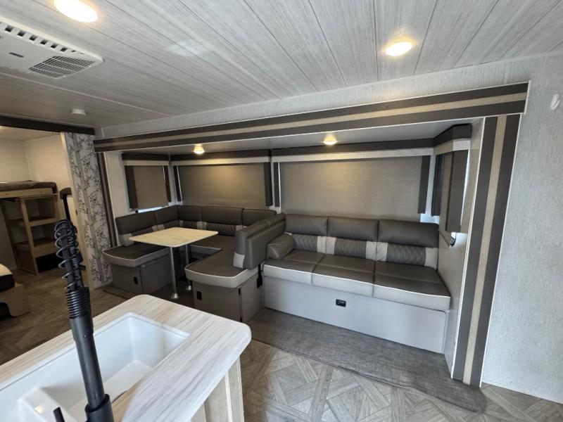 It won't be long before your family asks you to plan another trip with this Salem travel trailer! The 18' awning lets you have fun playing games outside while you stay protected from the sun or rain, and the interior will certainly provide loads of excitement with great features. You will appreciate finding an 11 cu. ft. frost free refrigerator and walk-in pantry in the kitchen, a front private bedroom with a custom king bed, and a fireplace across from the Versa Lounge which happens to be the ultimate in furniture versatility. Your guests or the kids are sure to love their own space in the private bunkhouse with ample sleeping space!