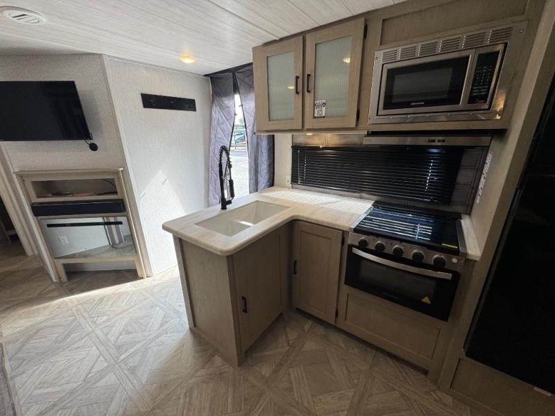 Enjoy years and years of memories with any one of these Forest River Salem travel trailers! They are built with a one piece, SuperFlex roof, a powder coated I-beam frame, and an aerodynamic front radius profile for an easier tow. The triple seal slide out system prevents water from seeping inside and keeps it outside where it belongs. The Salem Best In Class Value Package includes upgraded designer furniture, seamless countertops with no T-mold, and two zone residential soundbars with FM, Bluetooth, HDMI and USB. You will also appreciate the heated and enclosed Accessi-Belly with removable underbelly panels, the power tongue jack with an LED light, the designated CPAP storage. Some new upgraded features include: kitchen backsplash, fireplaces with mirror fronts, bedroom bedding, 12V refrigerator, now with glass doors, and so much more!