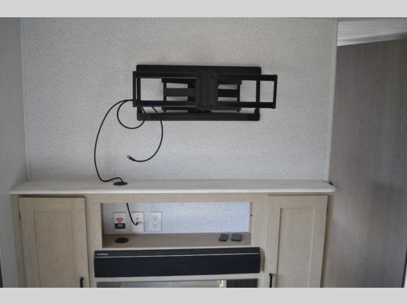 Enjoy years and years of memories with any one of these Forest River Midwest Salem travel trailers! They are built with a one piece, SuperFlex roof, a powder coated I-beam frame, and an aerodynamic front radius profile for an easier tow. The triple seal slide out system prevents water from seeping inside and keeps it outside where it belongs. The Salem Best In Class Value Package includes upgraded designer furniture, seamless countertops with no T-mold, and two zone residential soundbars with FM, Bluetooth, HDMI and USB. You will also appreciate the heated and enclosed Accessi-Belly with removable underbelly panels, the power tongue jack with an LED light, the designated CPAP storage. Some new upgraded features include: kitchen backsplash, fireplaces with mirror fronts, bedroom bedding, 12V refrigerator, now with glass doors, and so much more!