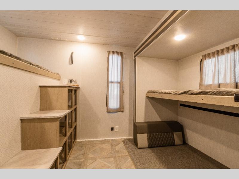 It's time to check out this exciting and full-featured Salem Platinum Edition travel trailer! This unit provides two separated sleeping spaces; a rear private bunkhouse and a front private bedroom. Another feature that is just as helpful as the one in your own home is the kitchen. With an 11 cu. ft. frost free refrigerator, a three burner cooktop, a double sink, and abundant cabinet storage, you will be able to create delicious meals for the entire family. Plus, if you prefer to have a sunrise breakfast, you can simply take your preparations outside to the outdoor kitchen!