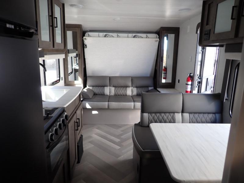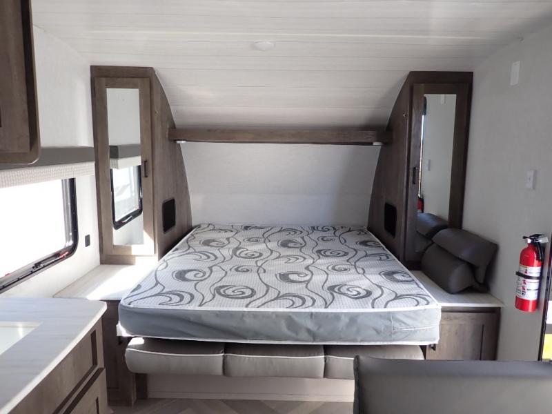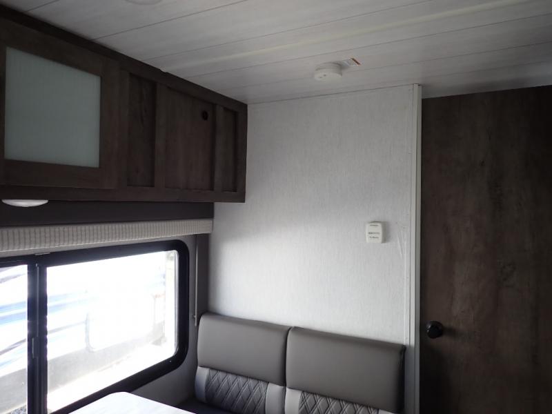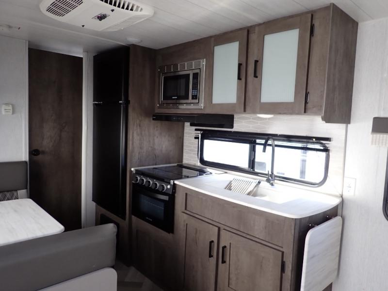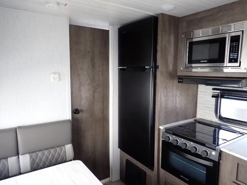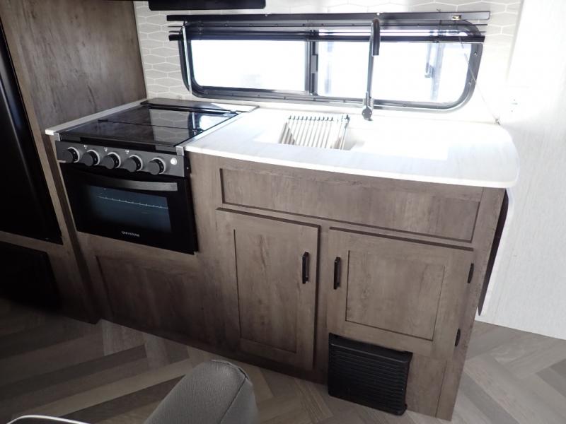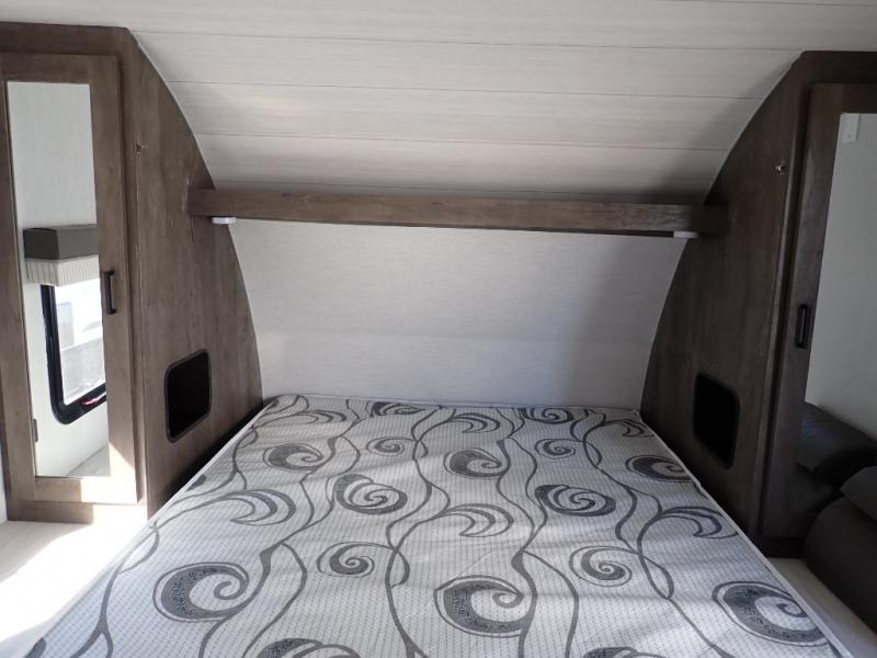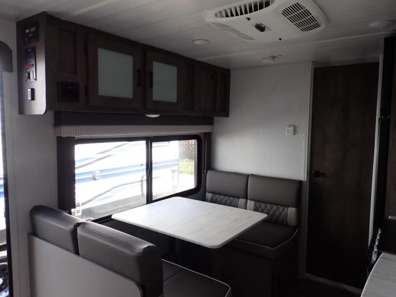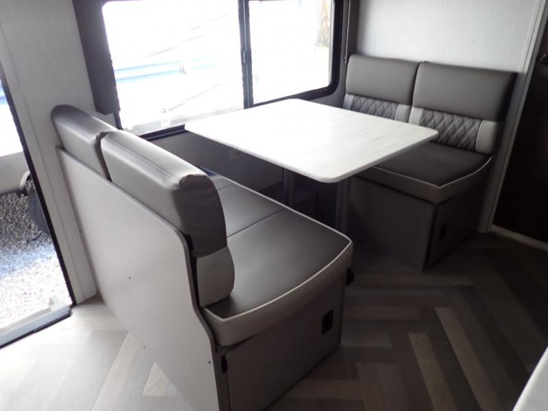 With less than 4,000 lbs. of weight and an aerodynamic front radius profile, you can be sure this travel trailer will tow with ease! The full rear bathroom has a radius walk-in shower to start your mornings off clean and fresh, and there is a closet to keep your towels and other accessories close by too. Up front there is an Easy Bed lift system to increase your living space by providing a queen bed to sleep on at night and a Jiffy sofa to sit on during the day. You can whip up a delicious meal with the three burner cooktop and oven then head to the booth dinette to enjoy your meals!