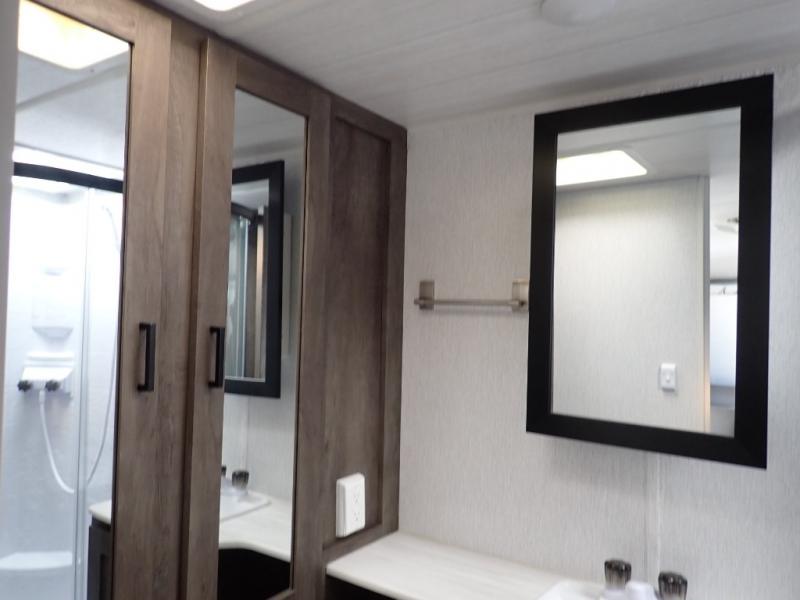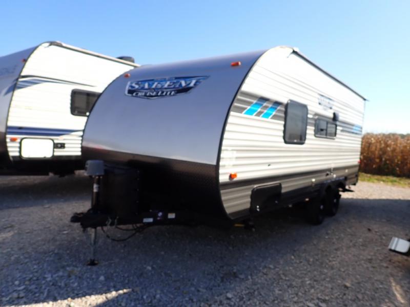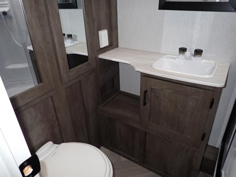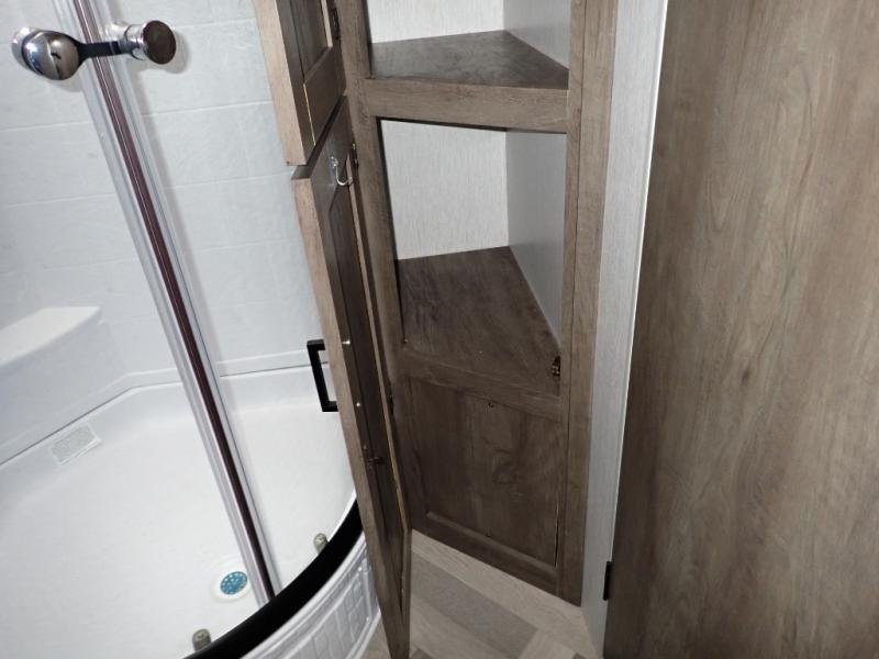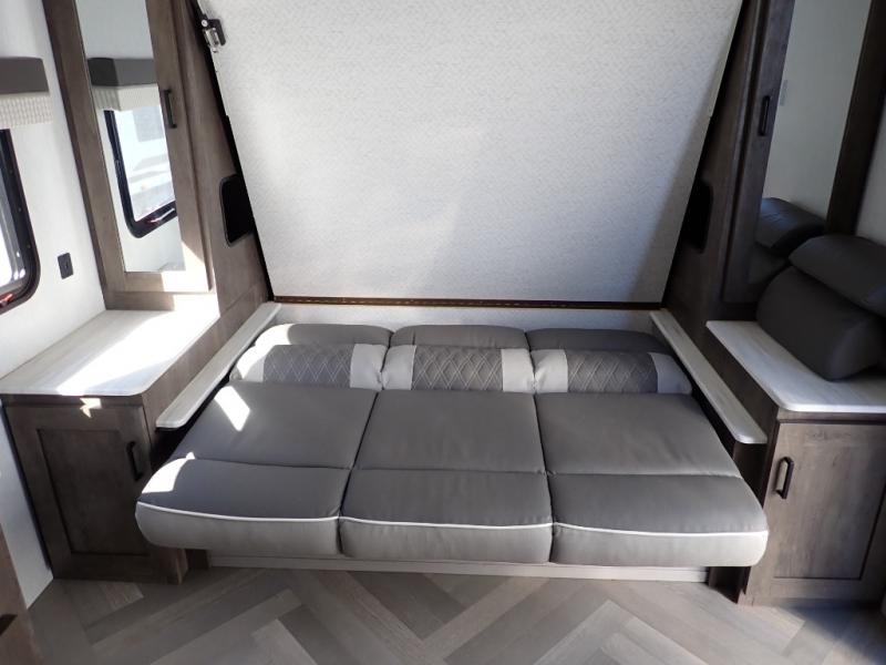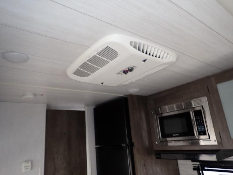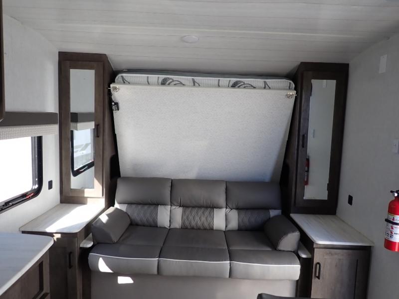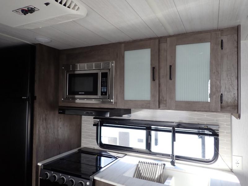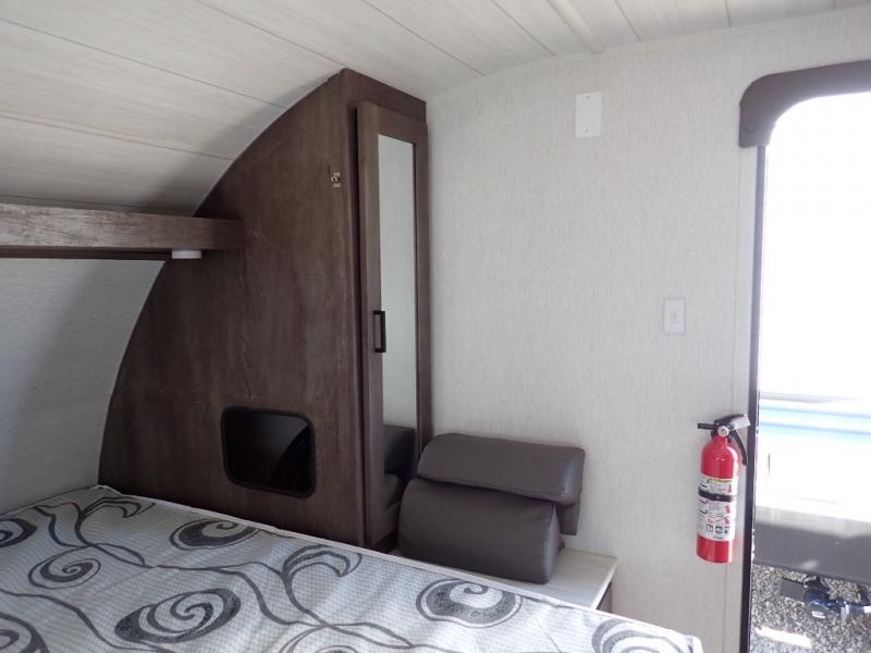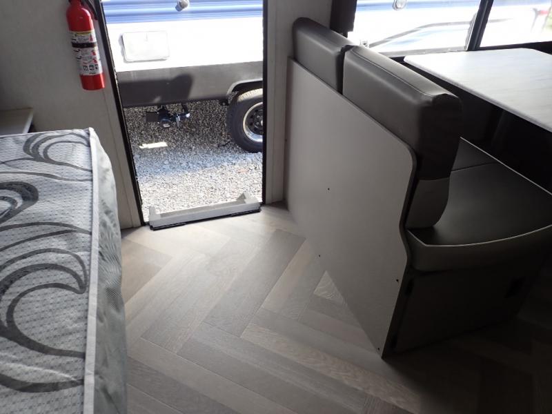 With less than 4,000 lbs. of weight and an aerodynamic front radius profile, you can be sure this travel trailer will tow with ease! The full rear bathroom has a radius walk-in shower to start your mornings off clean and fresh, and there is a closet to keep your towels and other accessories close by too. Up front there is an Easy Bed lift system to increase your living space by providing a queen bed to sleep on at night and a Jiffy sofa to sit on during the day. You can whip up a delicious meal with the three burner cooktop and oven then head to the booth dinette to enjoy your meals!