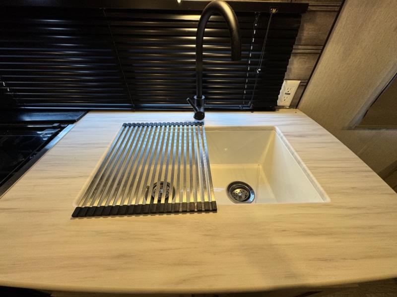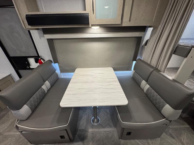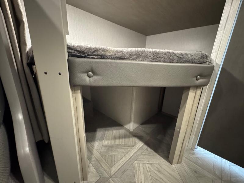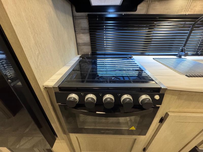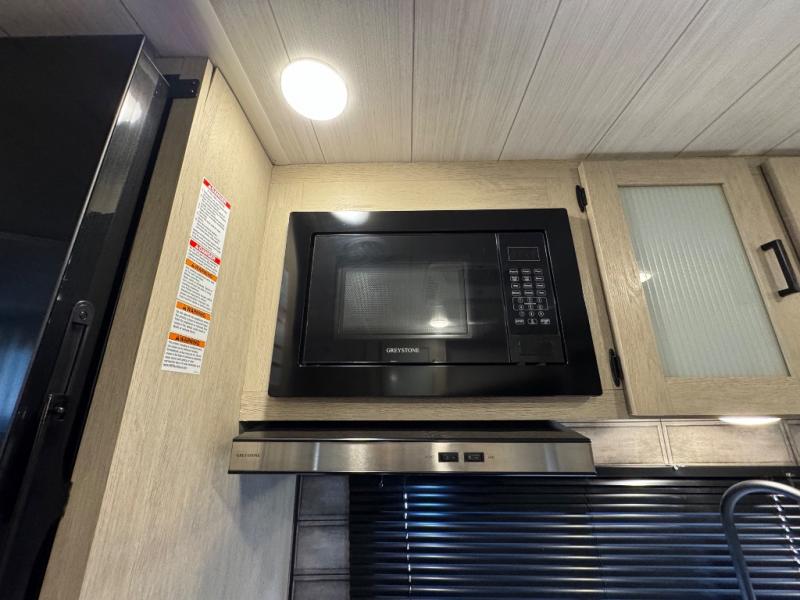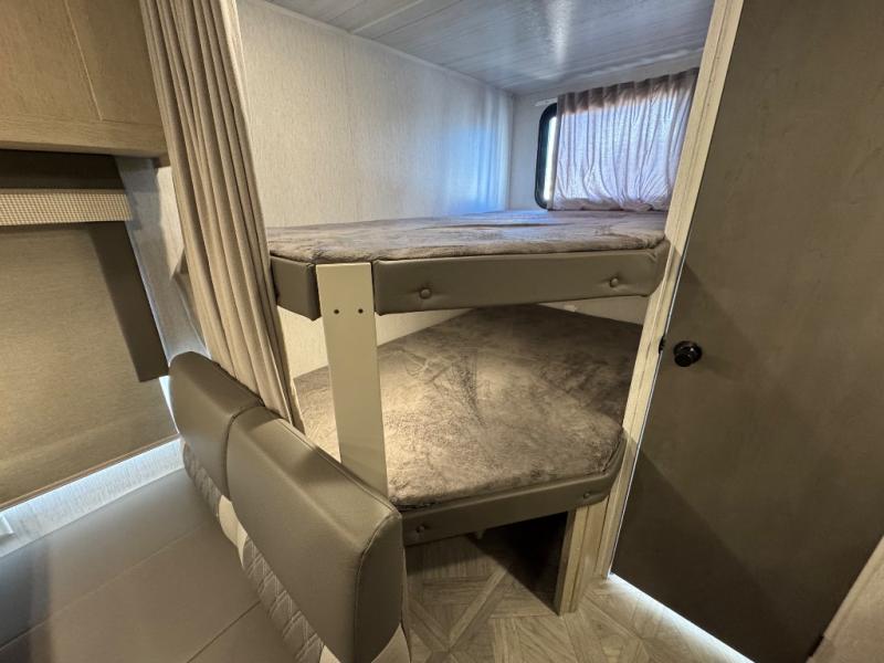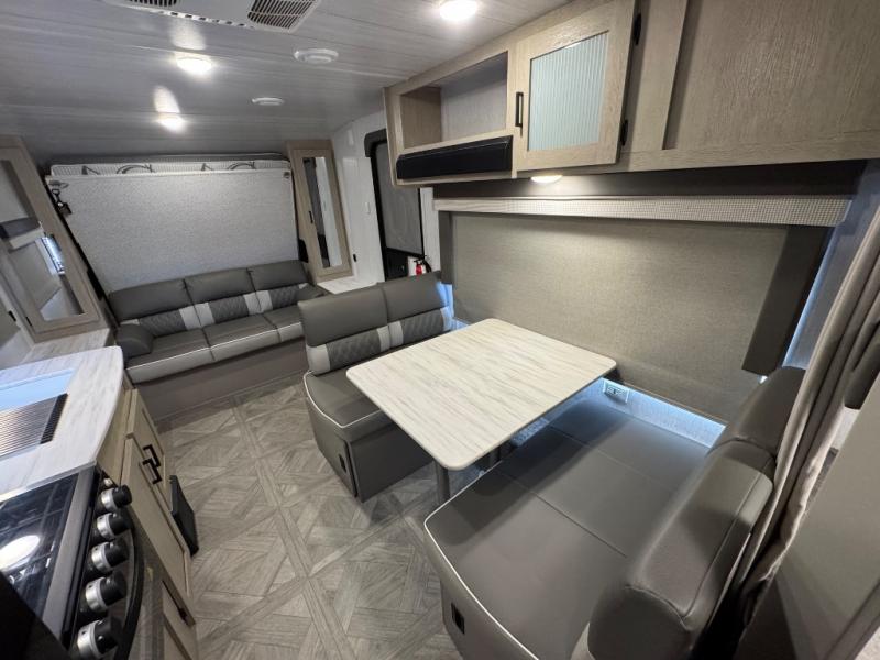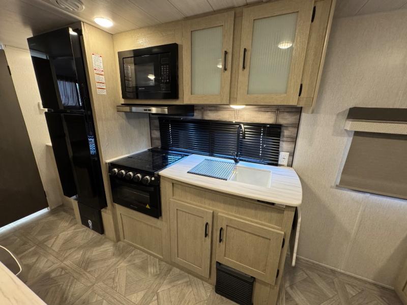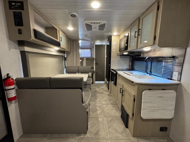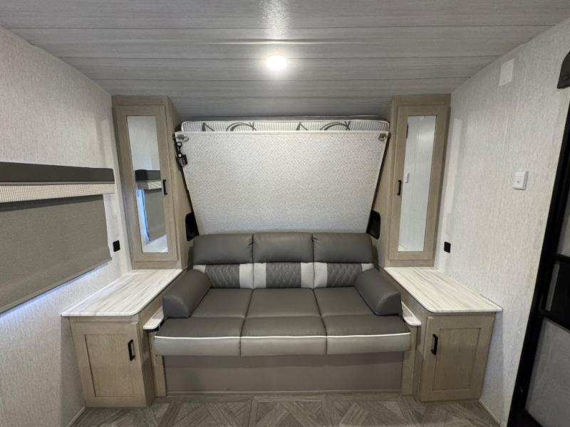 If you're looking for a bunkhouse travel trailer that weighs less than 5,000 lbs. then look no farther! Everyone can freshen up each morning in the rear corner bathroom with the walk-in shower with a skylight above for added natural lighting. The kids can sleep on the 48" x 74" double-size bunk beds and you can sleep on the front Murphy bed which has an Easy Bed lift system. The booth dinette can also transform into an extra sleeping space when you're not using it to enjoy your meals or playing card games. You might even like to add the optional outside kitchen if you enjoy breakfast outdoors!