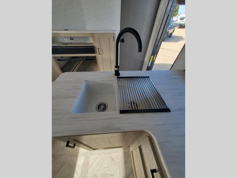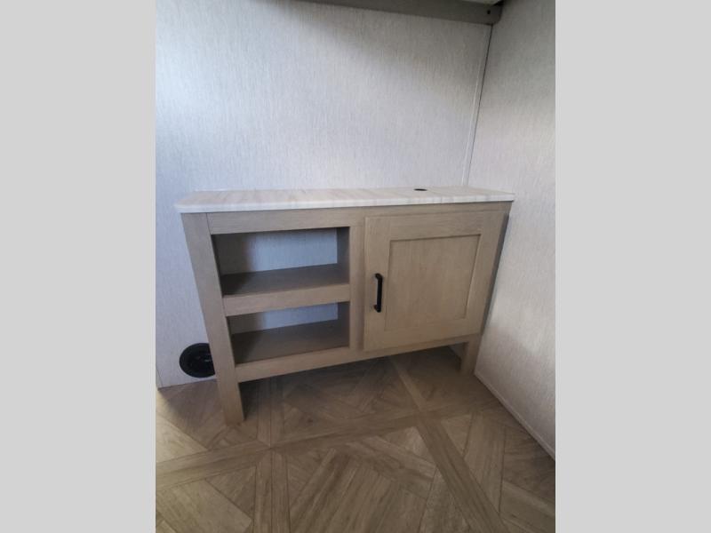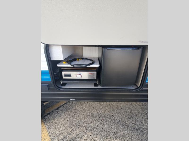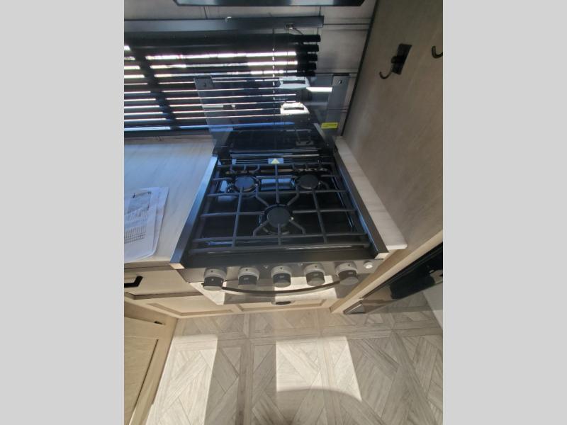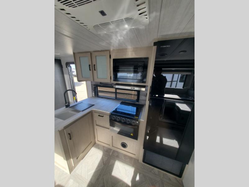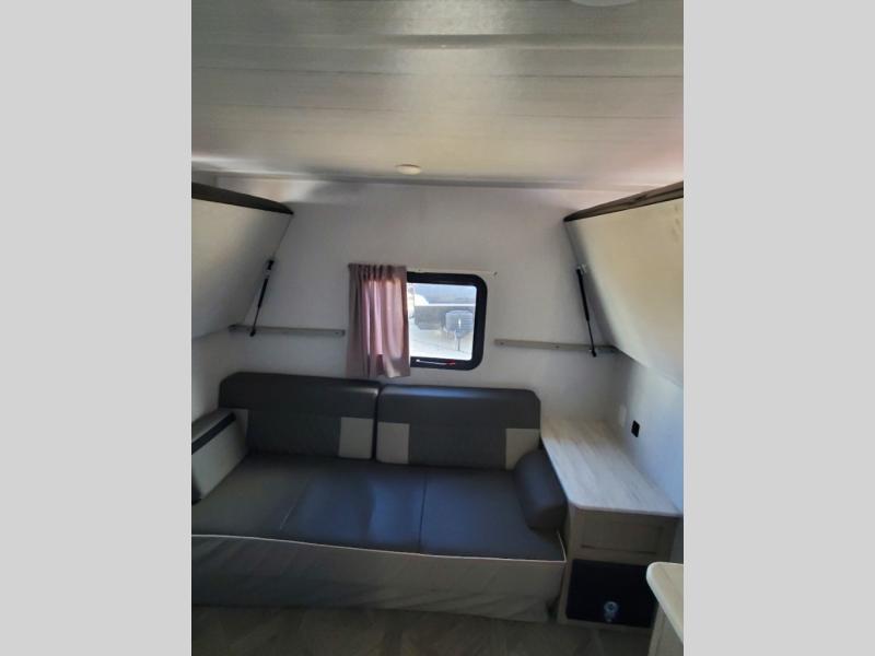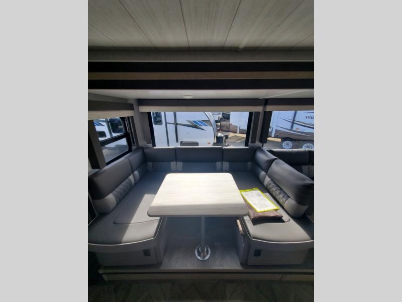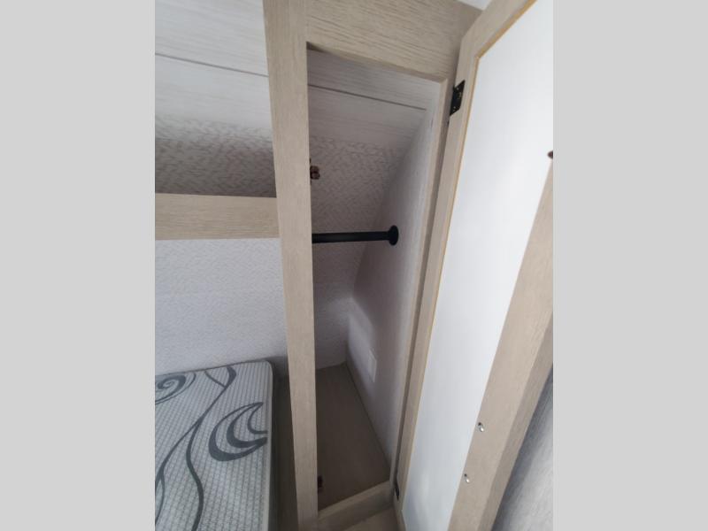 This travel trailer is new to the lineup and offers a large amount of versatility! The rear private bunkhouse has two 30" x 74" Versa-bunks and a Versa- queen bed so that more can join in on the camping fun. Start each morning feeling clean and fresh after showering in the walk-in shower with fiberglass surround then head to the front private bedroom to change. The kitchen has an oversized 11 cu. ft. refrigerator to keep your perishables fresh, a three burner cooktop for meals, and a U-shaped dinette for dining, game time, or just hanging out.