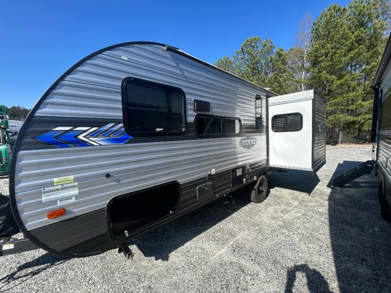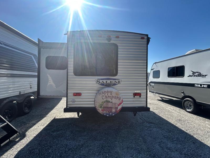 The Forest River Salem FSX travel trailers and toy hauler travel trailers are ultra comfortable and lightweight, perfect for first time or seasoned campers alike! You will love how easy it will be to relax with residential features that will make your space feel just like home, and the durable construction means you can enjoy your RV for years to come. There are a wide variety of floorplans to choose from, including couple's trailers, bunk models, and toy haulers, all with full bath and kitchen amenities and plenty of storage for all your gear!