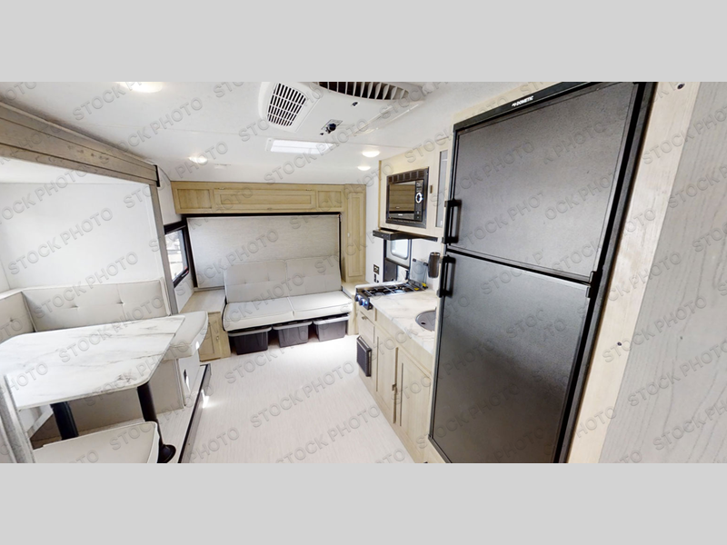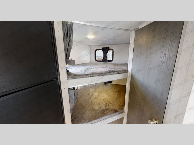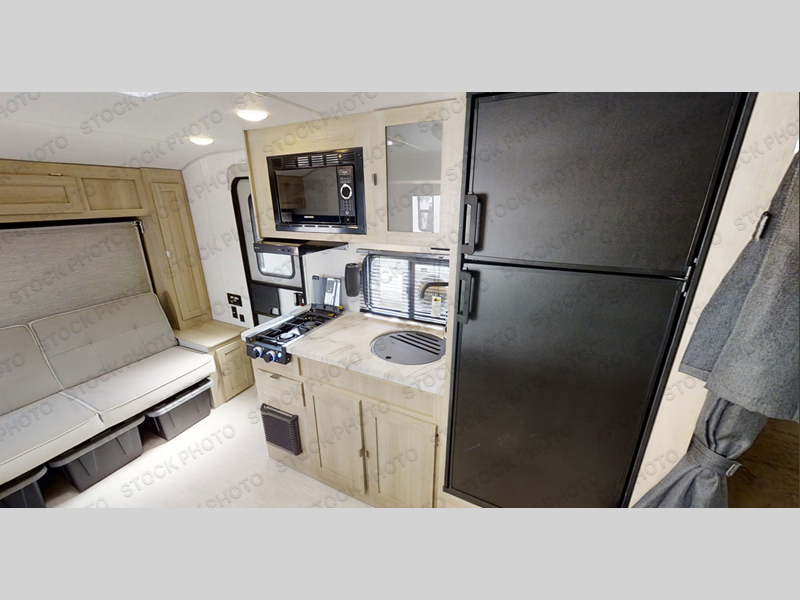 Start camping the right way in this travel trailer! It features a front Murphy bed that will double as your seating and sleeping space each day. The corner set of double-size bunk beds come with storage to keep things out of the way and are conveniently next to the rear corner bathroom with a shower with a skylight to freshen up in each morning. You can prepare your best home cooked meals indoors with the two burner cooktop or head to the outside kitchen to fry up some burgers while breathing in some fresh air. Enjoy your meals, play card games, and even sleep at the U-shaped dinette slide. You will also appreciate the outside shower and the exterior full pass-through storage for camp gear!