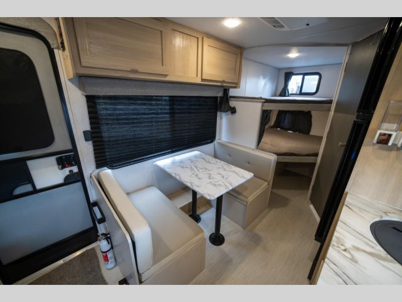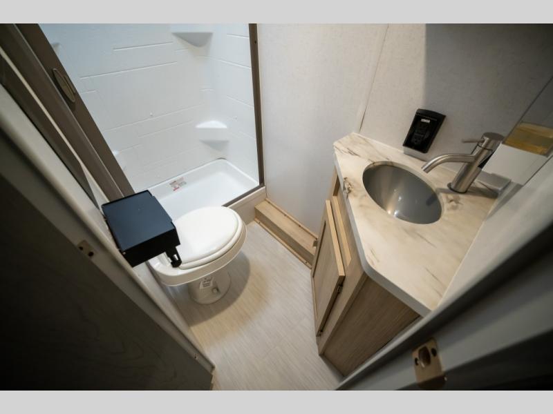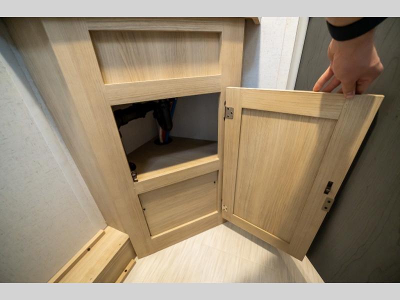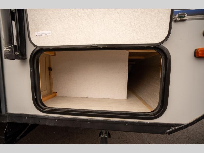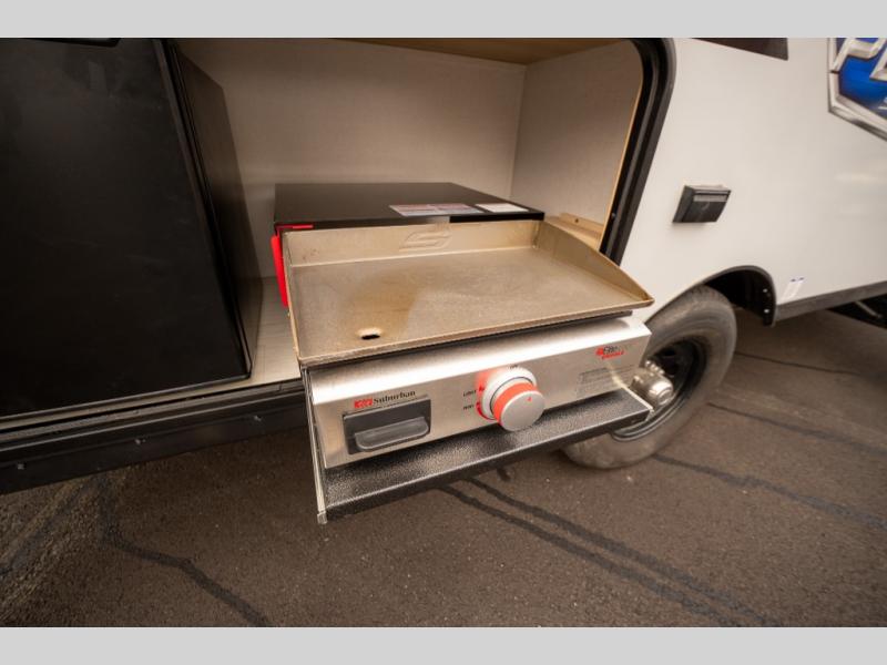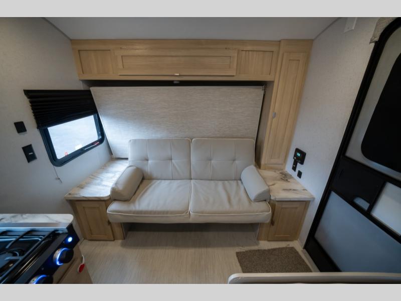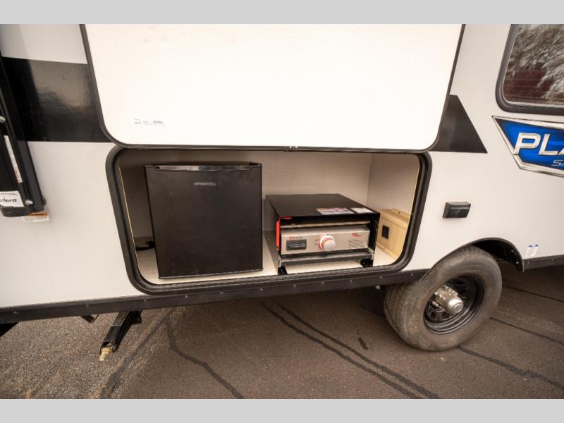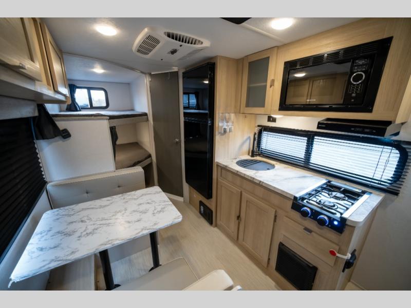 No need will go unmet with this travel trailer! It features a front Murphy bed that will double as seating and sleeping space, double-size bunk beds with storage, plus a booth dinette. You can prepare your best home cooked meals indoors with the two burner cooktop or head to the outside kitchen to fry up some burgers while breathing in some fresh air. You will also appreciate the outside shower and the front exterior full pass-through storage area for all your outdoor gear.