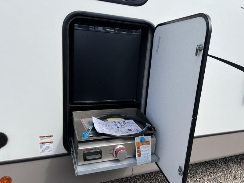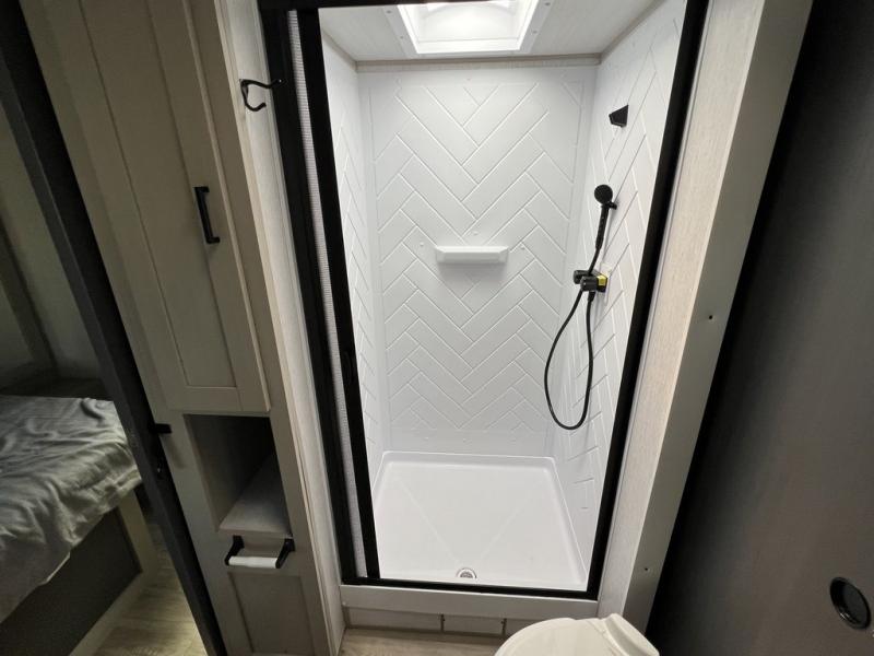 You will experience better gas mileage and a smoother ride with any one of these Forest River Salem Hemisphere Hyper-Lyte travel trailers! The stunning interiors include European Oak colored horizontal plank flooring for an easy clean up, beautiful saddle colored wood cabinetry, and matte black cabinet hardware. With a high efficiency A/C cooling system, you can be sure to stay cool even on the hottest summer day. The mandatory Upgraded Options package includes an outside shower to rinse the mud off before entering, a central switch center, and an ivory performance colored exterior fiberglass with smoked quartz metallic accents to turn heads while at the campsite!