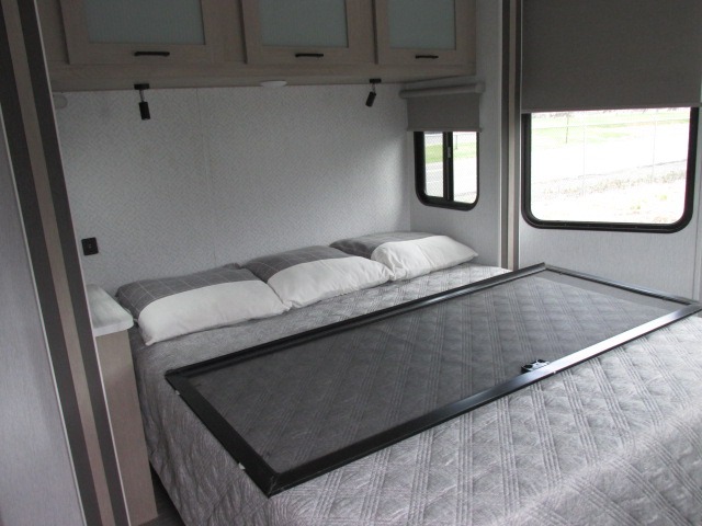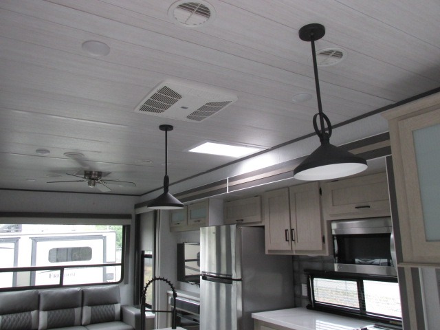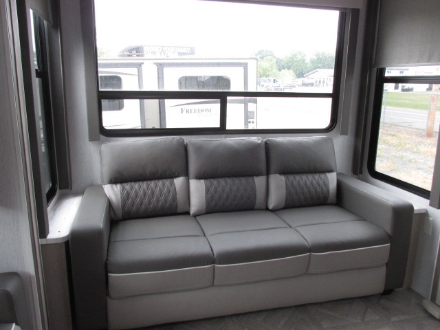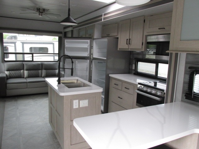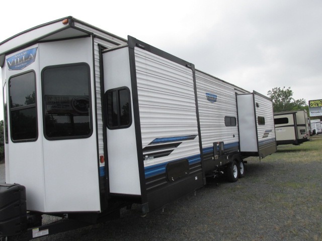 The Forest River Salem Villa Series destination trailer offers you an excellent space to relax in and rejuvenate your adventurous spirit! The construction has been built with 2" wall studs, 5" bowed truss roof rafters, 3/8" walk-on roof decking, and fiberglass insulation throughout. The 8' interior height is going to provide you with an open and spacious living area, and the heated and enclosed accessi-belly will protect your trailer from the elements. The Salem Villa Series comes loaded with upgraded designer furniture, a Serta mattress, stainless steel appliances, seamless countertops, and extra-large windows in the main slide with cross ventilation.