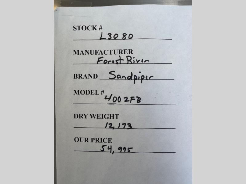 Used 2023 Forest River RV Sandpiper 4002FB Fifth Wheel