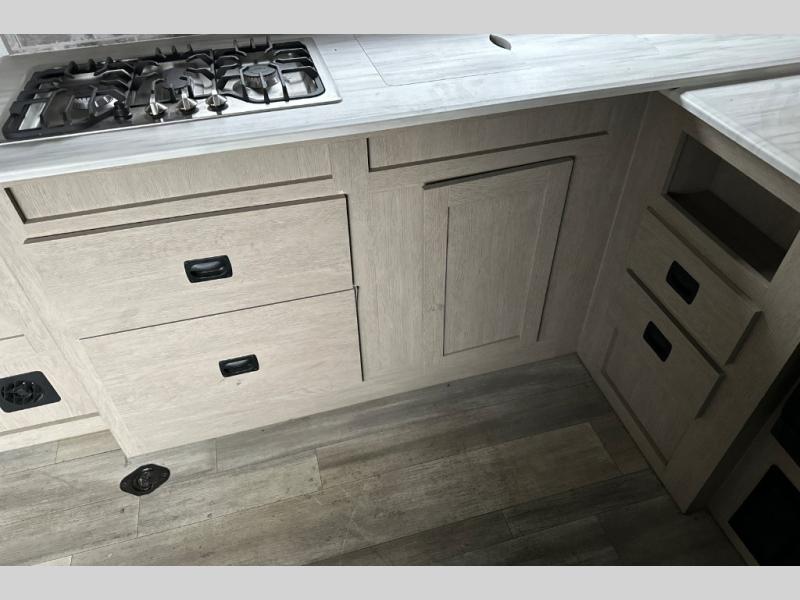 This Sandstorm GLE toy hauler is perfect for all your outdoor adventures. After you've unloaded your gear using the ramp door, you can relax on the electric pass-thru dinette, or let your guests rest on the drop-down electric bed. There are also dual lounge chairs with a table where you can enjoy your morning coffee at each morning, and the entertainment center provides hours of fun. The full kitchen includes a microwave oven, a three burner range, plus a refrigerator to store food for the week, and the full bath lets you stay fresh every day. You can spend your evenings outdoors since there is a patio awning with LED lights, and the king bed in the front private bedroom is sure to bring comfort each night!
