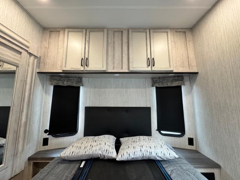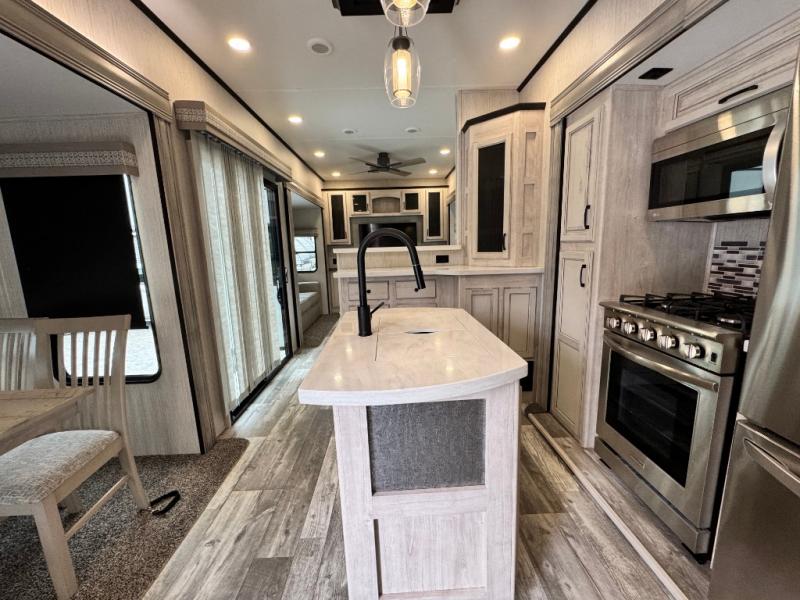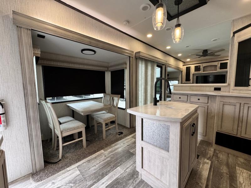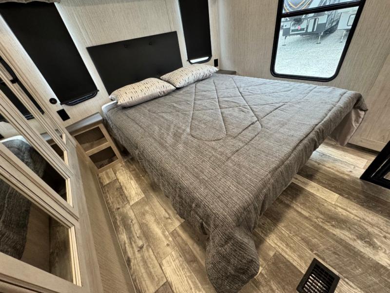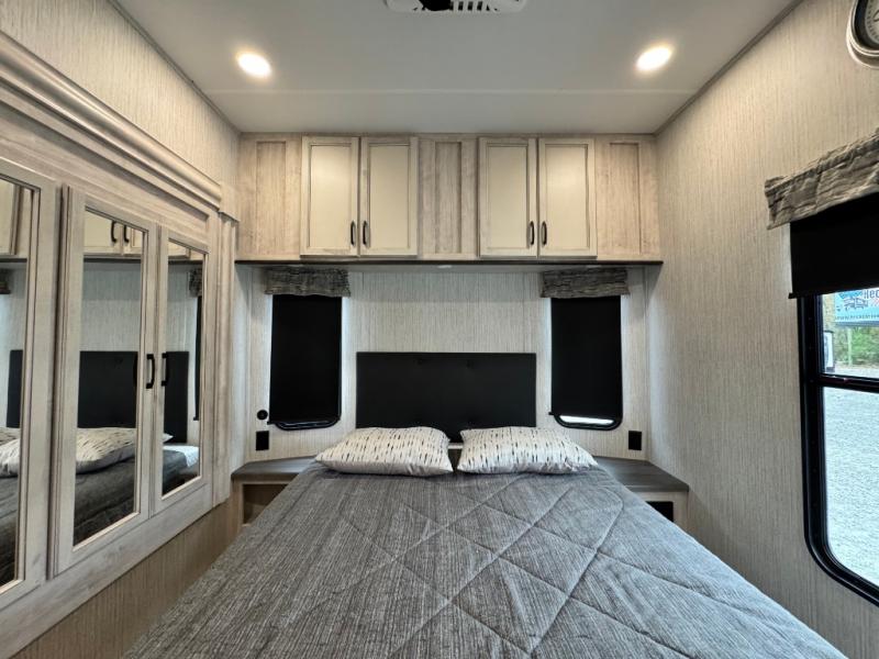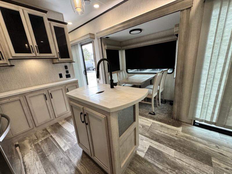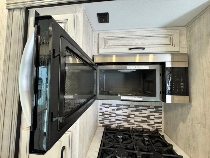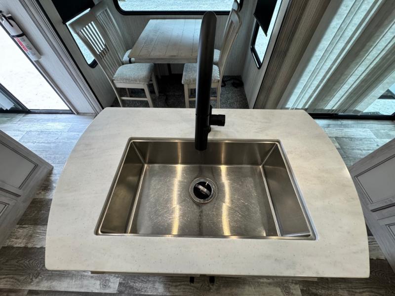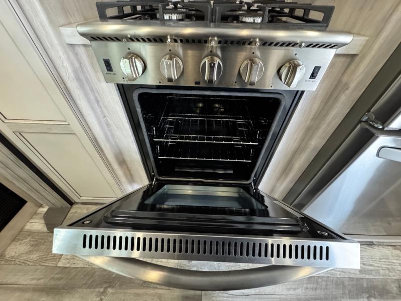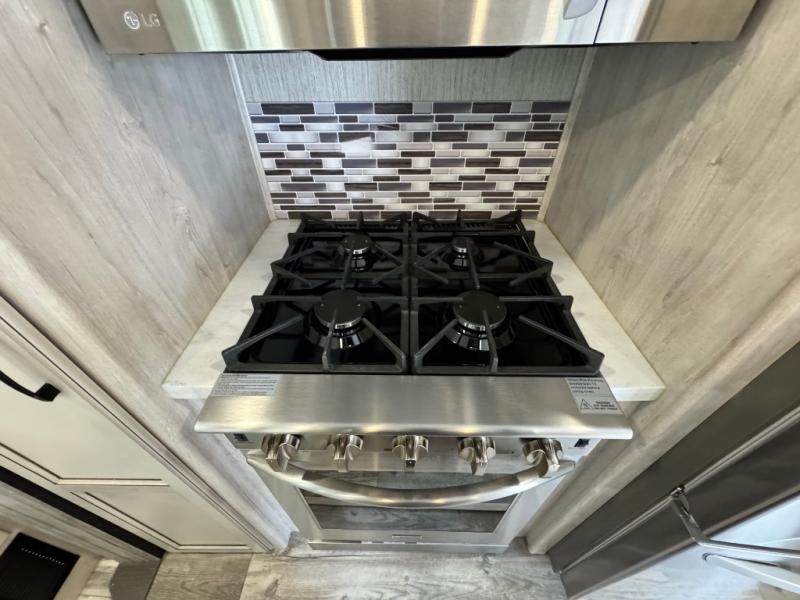 SOLID SURFACE COUNTERTOPS, 4 BURNER STAINLESS RANGE, DETACHABLE HITCH, HIGH EFFICIENCY RADIANT FOIL (ROOF + FLOOR), ROLLERSHADES THROUGHOUT, KING WI-FI EXTENDER SYSTEM, MAXX AIR FAN IN KITCHEN AND BATH W/WALL SWITCH, 60K BTU ON DEMAND WATER HEATER