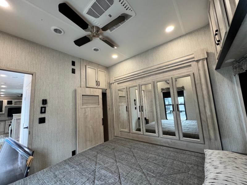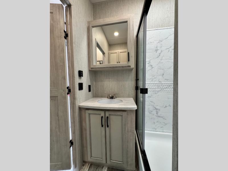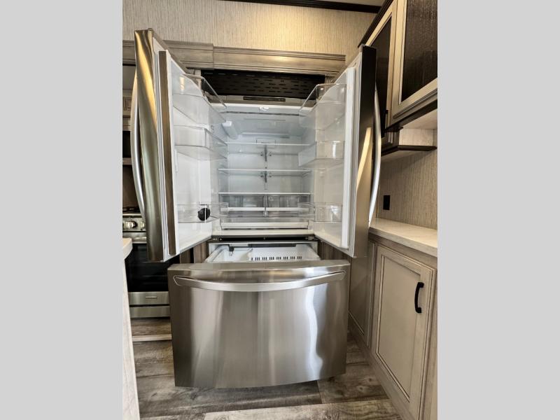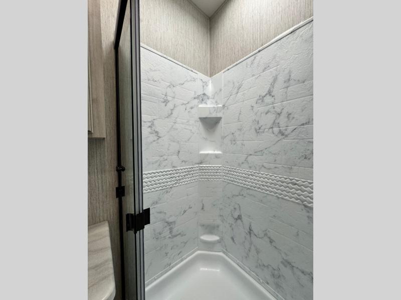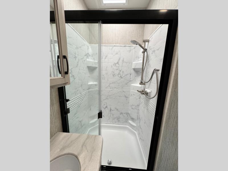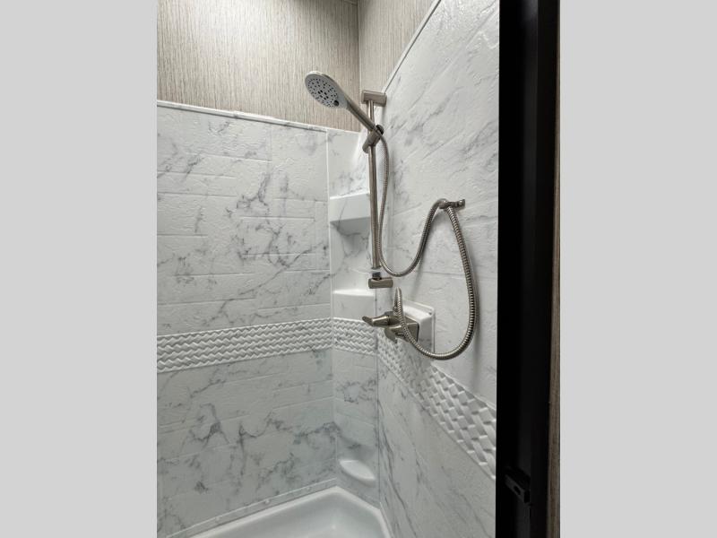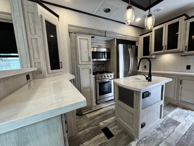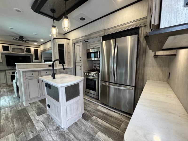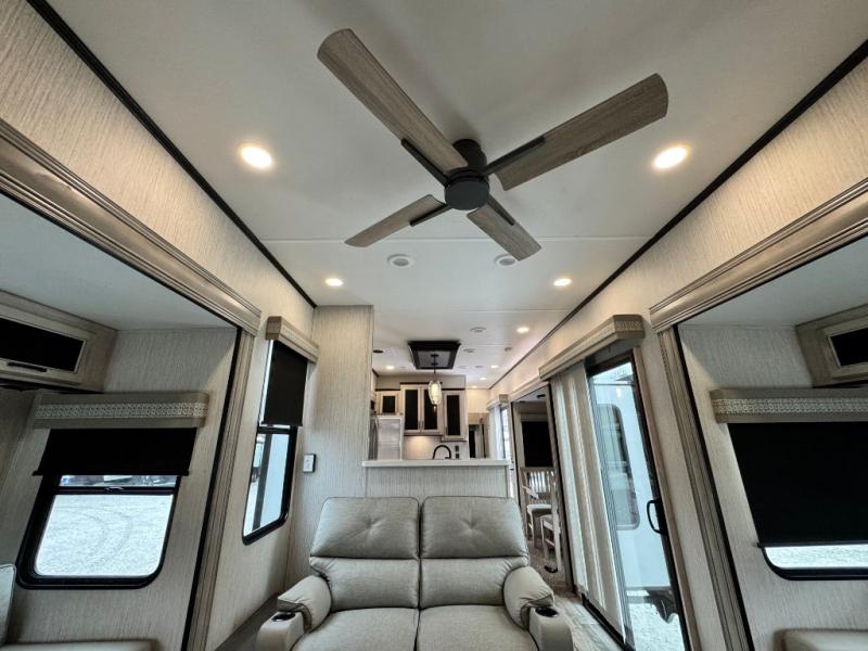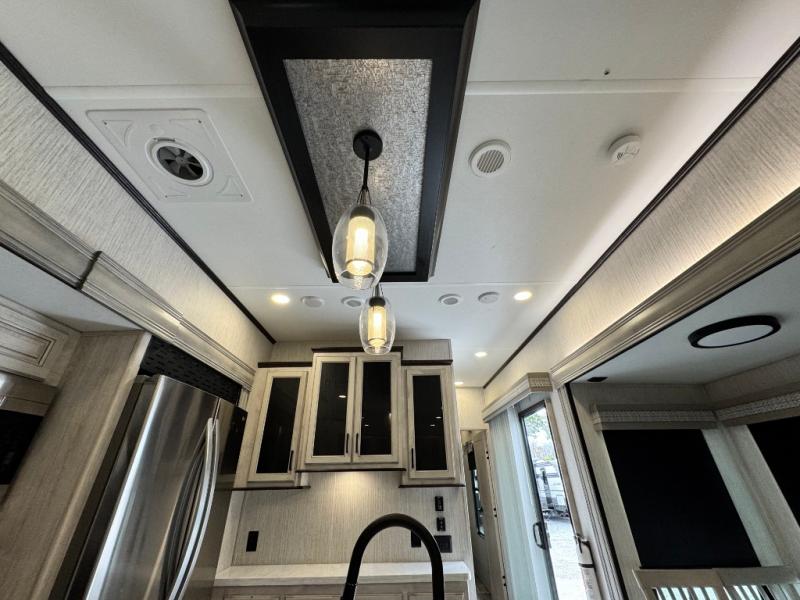 SOLID SURFACE COUNTERTOPS, 4 BURNER STAINLESS RANGE, DETACHABLE HITCH, HIGH EFFICIENCY RADIANT FOIL (ROOF + FLOOR), ROLLERSHADES THROUGHOUT, KING WI-FI EXTENDER SYSTEM, MAXX AIR FAN IN KITCHEN AND BATH W/WALL SWITCH, 60K BTU ON DEMAND WATER HEATER