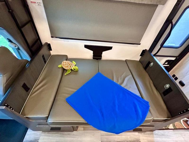 This Sunseeker LE Class C gas motorhome offers you quite a bit of sleeping space with its RV queen bed, kid's sofa sleeper, flip-down bunk, booth dinette, sofa, and 60" x 80" bunk over the cab. There are also two slides on this coach so that you can have more space for all of those travelers, and the great kitchen amenities, like the recessed three-burner range and convection microwave, will make it easy to feed all of those people. You will also have a full bathroom for everyone to use when they need to clean up, and the shower skylight will add some brightness to the bathroom. Head outside for an evening together underneath the 11' electric awning with LED lights.