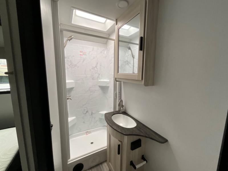 Don't make the mistake of passing up this Sunseeker LE Class C gas motorhome! There is a full bathroom with a shower skylight, oxygen-infused shower head with flexible extension, and an electric roof fan, and the bathroom is right next to the bedroom for convenience. The pantry, linen closet, wardrobe, and front storage offer you places to store your belongings, and there are also two large storage drawers in the booth dinette as well. While you're resting on the sofa, you can watch the 40" 12V LED TV, or you can chat with the chef who is preparing dinner on the recessed three-burner range or in the convection microwave.