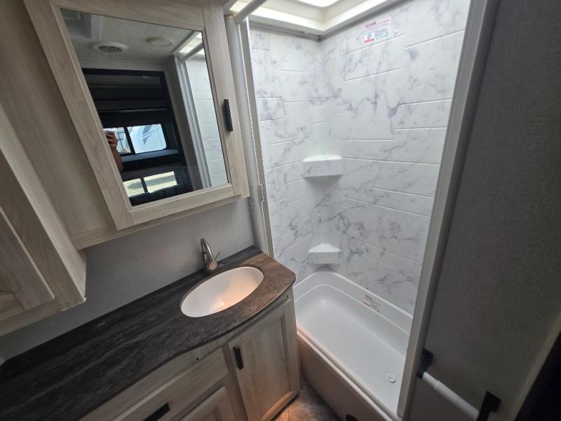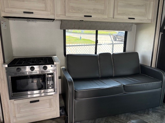Each Forest River Sunseeker LE Class C gas motorhome comes with the LE Premier Package for your benefit! This package includes great features like backup/sideview cameras with rearview mirror monitor, a fiberglass front cap, an in-dash premium sound system with Bluetooth, a Winegard Air 360+ antenna with preparation for Gateway 4G Wi-Fi, toppers for the slide outs, and a 15,000 BTU ceiling-ducted, ultra-quiet roof air with heat pump. All of these premium features rest on a Superlite composite substrate, 2"-thick gel-coat sidewalls with lightweight composite waterproof material, block-foam insulation, and a fiberglass roof. There is a satellite/cable connection, a 30,000 BTU furnace, a Maxx Air multi-speed power fan, and black-out roller shades.