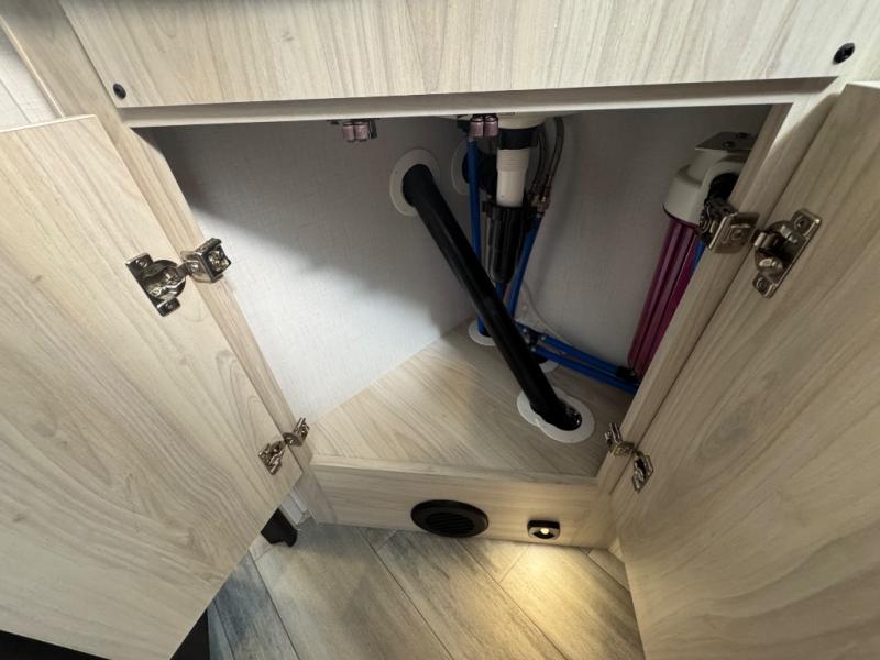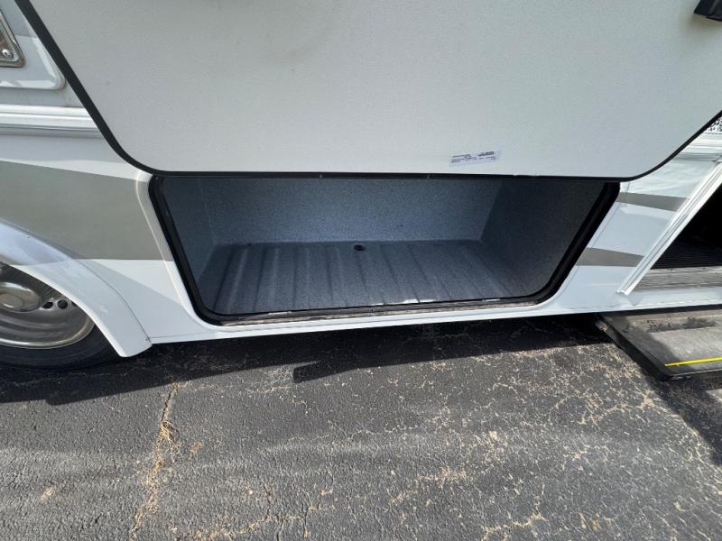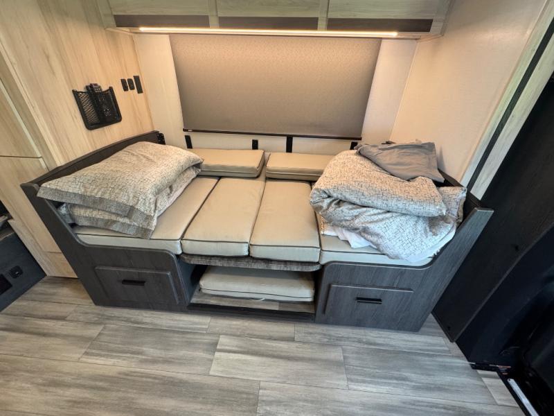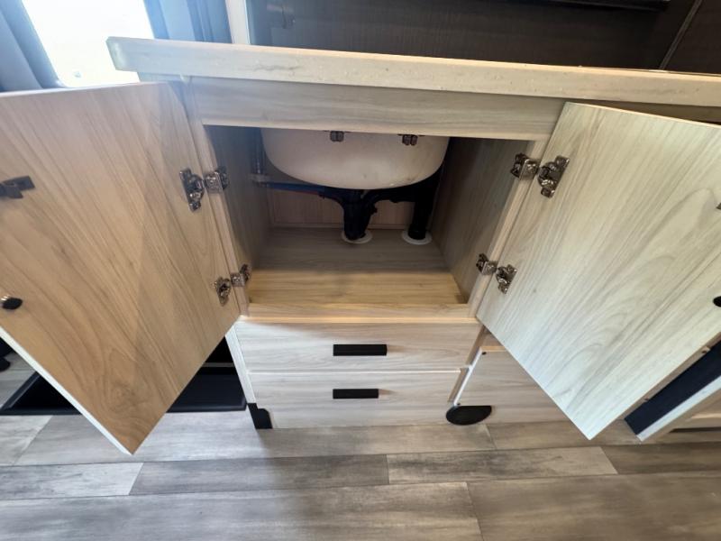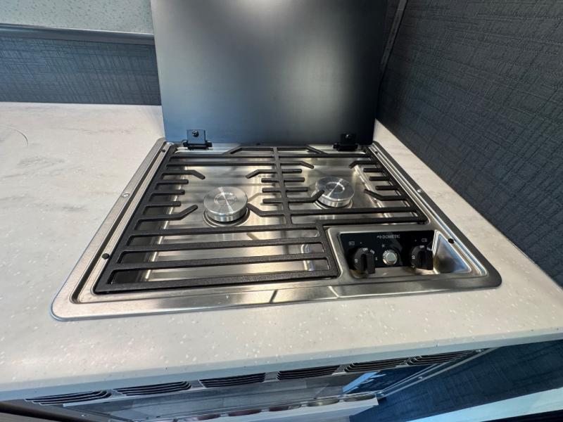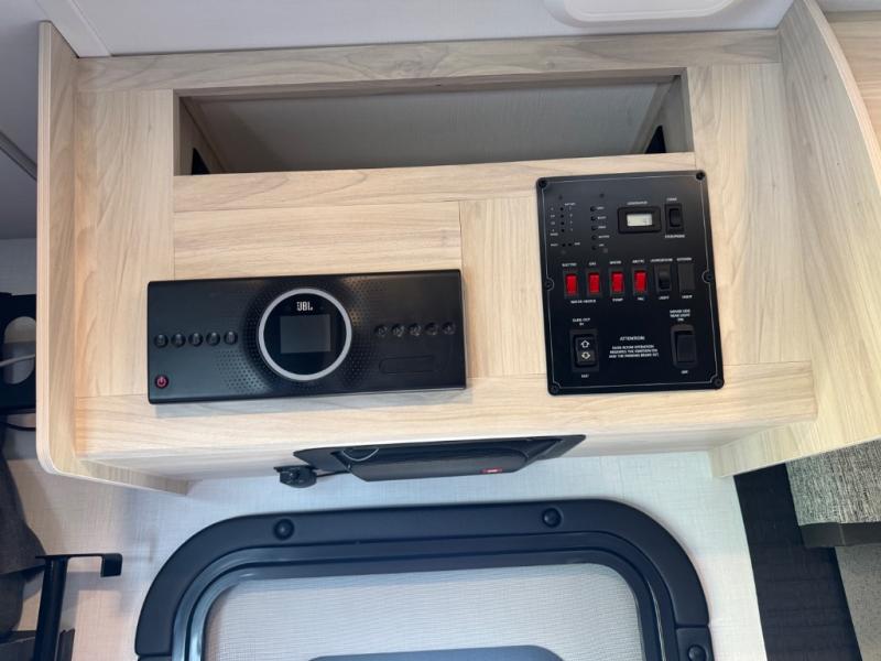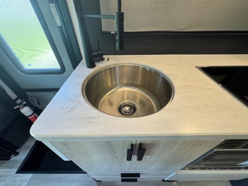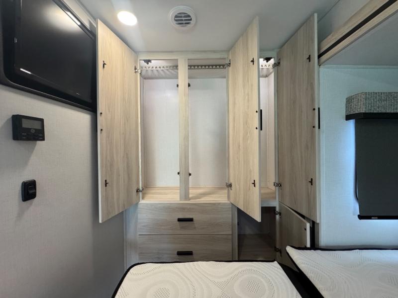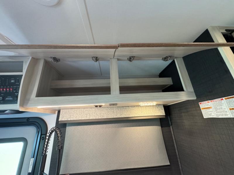 Everything you need is found in this cozy motorhome for five to six people. The swivel captain's seats can become a part of the living area once you park, and your guests can gather around the U-shaped dinette within the full-wall slide. Your meals can be prepared each day on the recessed two burner range, or in the 1.3 cu. ft. stainless steel convection microwave. The flip-up galley counter will provide additional counter space, and your perishables can be stored in the 10.7 cu. ft. 12V refrigerator. The semi-private bedroom features a queen bed, a 12V TV, plus a closet above the built-in dresser. You can also choose to add an optional 12V exterior TV if you enjoy watching the big game outdoors!