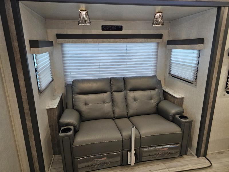 This well-maintained 2023 Surveyor Legend 202RBLE delivers smart design, modern finishes, and outdoor living features in an easy-to-tow 25’ layout. With a front queen bedroom, spacious theater seating slide, panoramic window, and outside kitchen, this pre-owned model is ready for your next adventure.