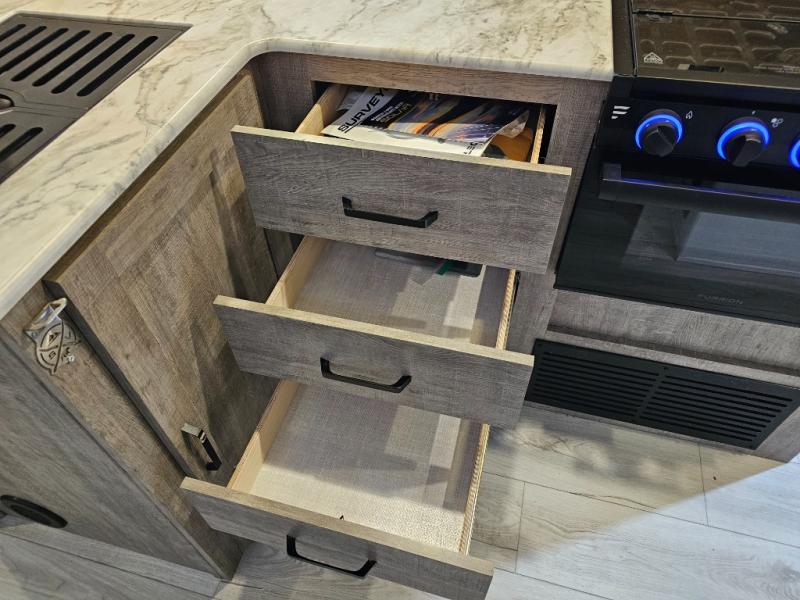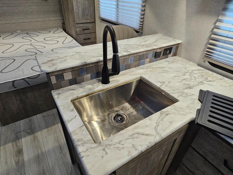 If you’re looking for a lightweight, feature-packed travel trailer with premium touches and outdoor cooking capability, the Surveyor Legend 202RBLE checks all the boxes. Its open floorplan, panoramic window, pass-through storage, and stylish interior make it an excellent choice for couples or small families ready to hit the road in comfort—without buying new.