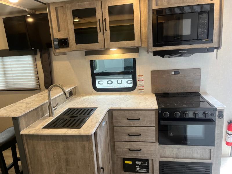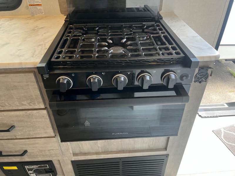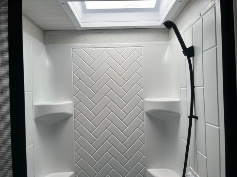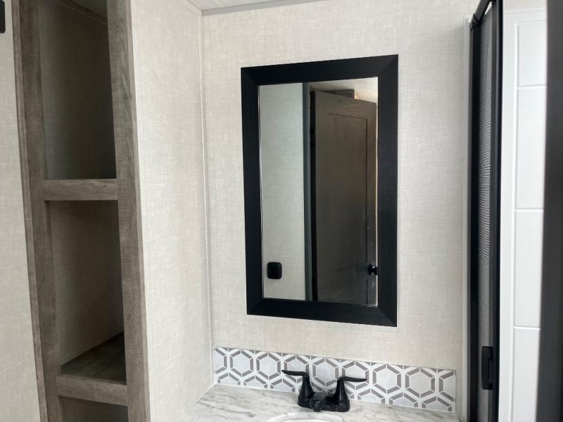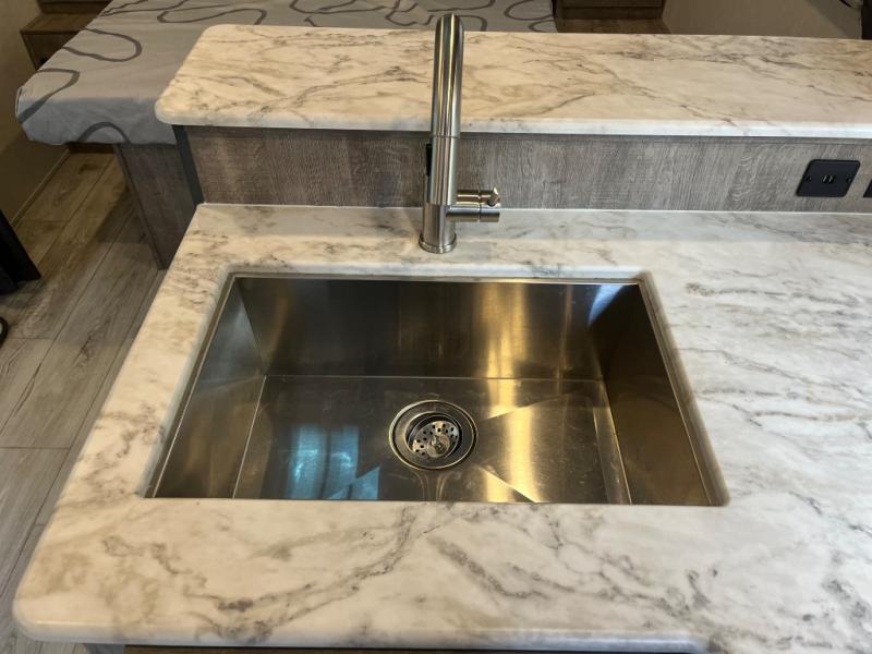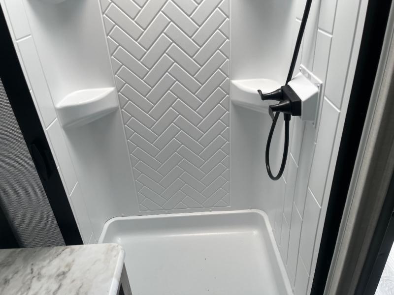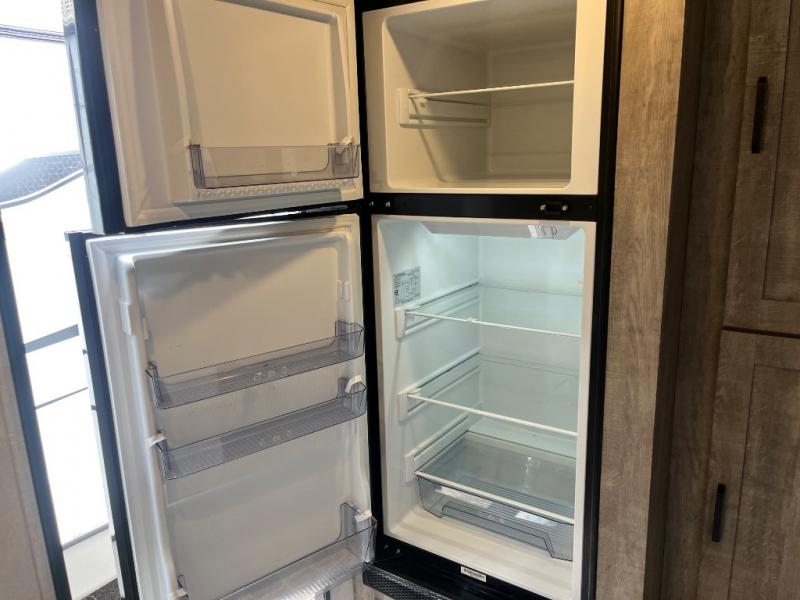 You're going to love every minute spent in this 25' travel trailer! The counter with stools will be the perfect place to enjoy your morning coffee at, plus there is a dinette slide for more seating space. You will get a great night's rest on the queen bed in the front bedroom, and the two wardrobes allow you to keep your clothes tidy. Further customize this trailer by adding the theater seating option or tri-fold sofa option in place of the dinette, and you'll enjoy the standard HD LED TV for late-night movies!