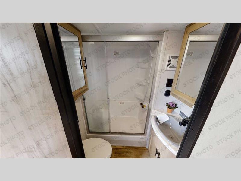 You're going to want to take a closer look at the Forest River Timberwolf destination trailer! These trailers have a backup camera system which will be extremely helpful as you maneuver these large units into the right spot. Some of the construction features include a seamless roofing membrane with heat reflectivity, a premium wheel package, power gear frame technology with space-saver rail design, and an armored underbelly tank enclosure. Use the USB charging stations to keep your phones ready to go, and stay in control of your trailer's electrical functions with the total control app and remote control system.