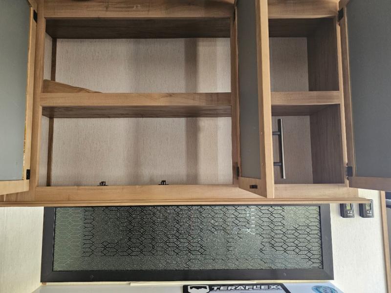 Ample cabinets and overhead storage for essentials