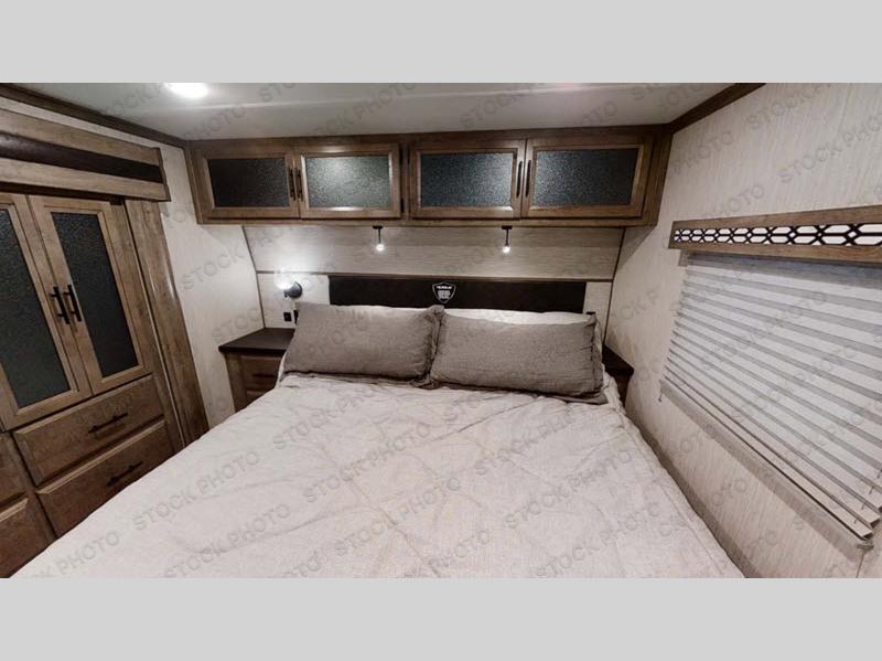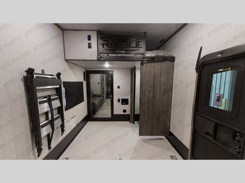 Every one of these Forest River Vengeance Rogue Armored fifth wheel toy haulers come with the features you want most at an affordable price tag! The DUR-A-POXY cargo floor has 5,000 lb. tie downs to ensure your toys will arrive safely without damaging the flooring, plus the 8' ramp door makes it easy to load them. A 15,000 BTU air conditioner will keep you cool even on the hottest summer days. An enclosed and heated underbelly keeps your unit's vitals protected and a central docking station makes life a little easier. The Rogue Armored package comes with a six point leveling system, a comfort plus adjustable powered king bed system, and a ramp door patio system. You can be sure to find one that fits your needs!