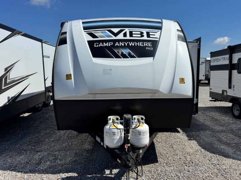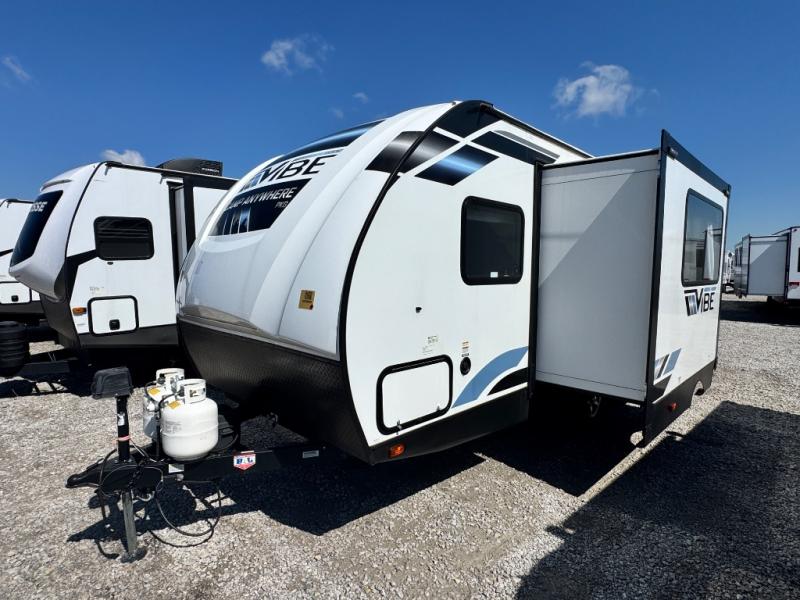 Each Vibe travel trailer by Forest River includes Hyper Lyte construction and a durable laminated "Aluma Frame" for years of use. The heated and enclosed underbelly allows you to extend your camping season, and the LED-lit exterior speakers will keep the party going as you grill outdoors and visit with family. Inside, you'll find LED lights to keep everything bright and open, a Bluetooth stereo, roller shades for your privacy, and many more amenities per region. These models also include cable and satellite prep and a digital TV antenna with a booster so you can stay connected to the outside world if you choose. Make the easy choice and choose a Vibe travel trailer today!