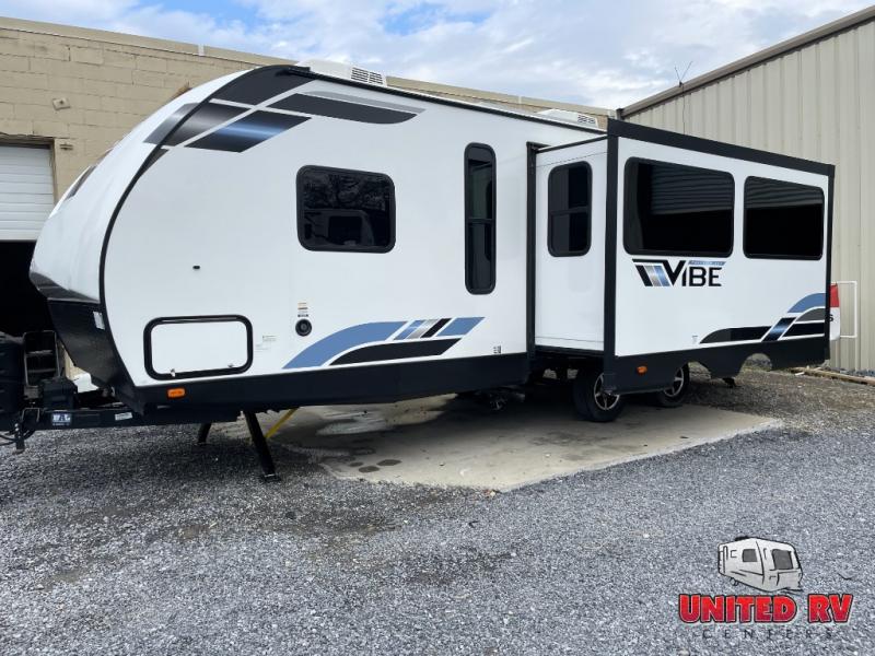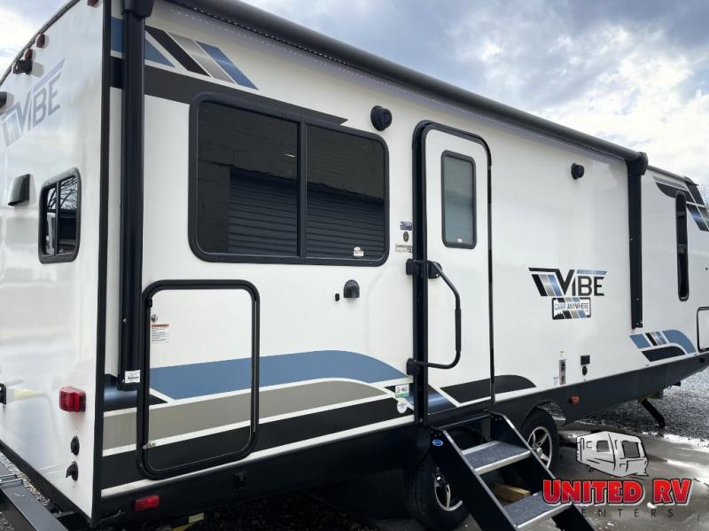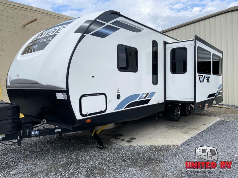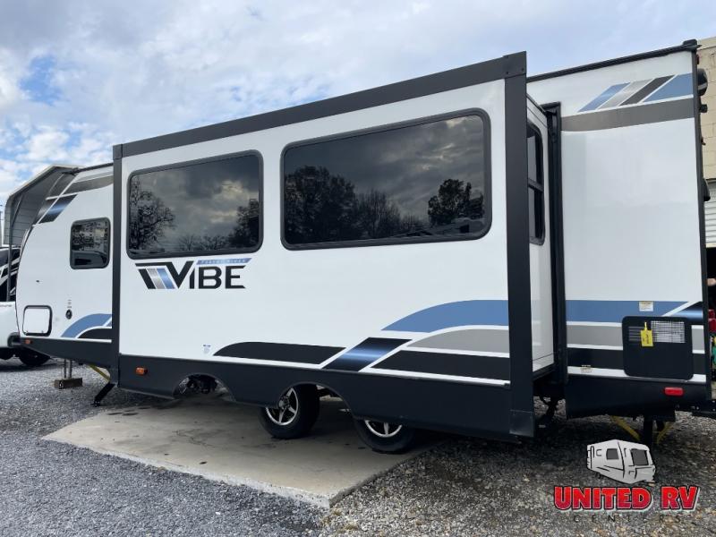Each Vibe travel trailer by Forest River includes Hyper Lyte construction and a durable laminated "Aluma Frame" for years of use. The heated and enclosed underbelly allows you to extend your camping season, and the LED-lit exterior speakers will keep the party going as you grill outdoors and visit with family. Inside, you'll find LED lights to keep everything bright and open, a Bluetooth stereo, roller shades for your privacy, and many more amenities per region. These models also include cable and satellite prep and a digital TV antenna with a booster so you can stay connected to the outside world if you choose. Make the easy choice and choose a Vibe travel trailer today!