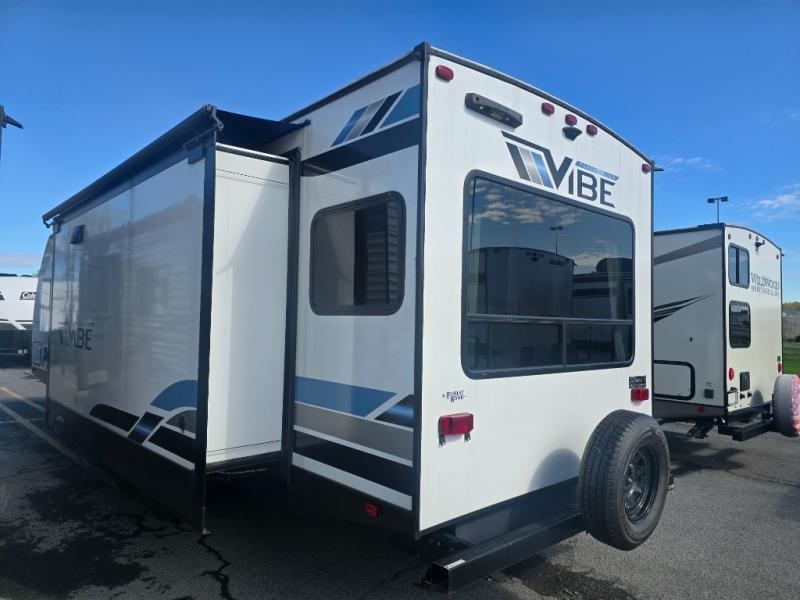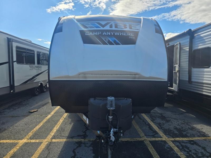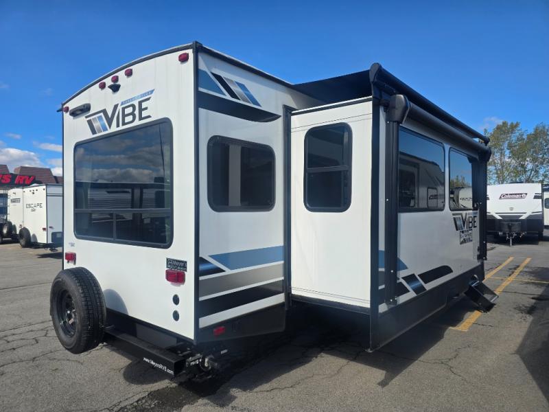 Each Vibe travel trailer by Forest River includes Hyper Lyte construction and a durable laminated "Aluma Frame" for years of use. The heated and enclosed underbelly allows you to extend your camping season, and the LED-lit exterior speakers will keep the party going as you grill outdoors and visit with family. Inside, you'll find LED lights to keep everything bright and open, a Bluetooth stereo, roller shades for your privacy, and many more amenities per region. These models also include cable and satellite prep and a digital TV antenna with a booster so you can stay connected to the outside world if you choose. Make the easy choice and choose a Vibe travel trailer today!