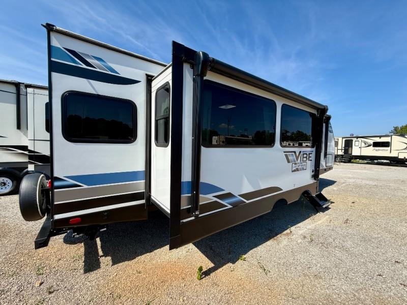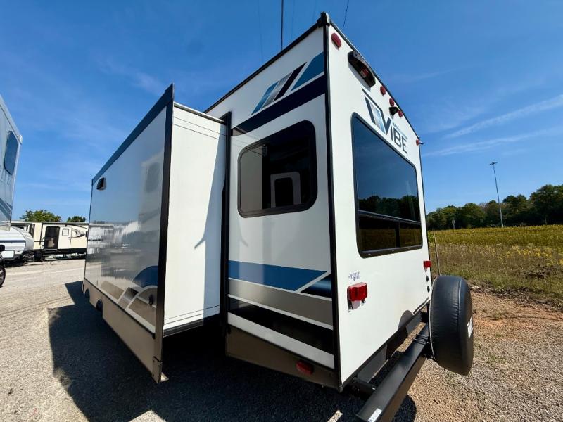 Each Vibe travel trailer by Forest River includes Hyper Lyte construction and a durable laminated "Aluma Frame" for years of use. The heated and enclosed underbelly allows you to extend your camping season, and the LED-lit exterior speakers will keep the party going as you grill outdoors and visit with family. Inside, you'll find LED lights to keep everything bright and open, a Bluetooth stereo, roller shades for your privacy, and many more amenities per region. These models also include cable and satellite prep and a digital TV antenna with a booster so you can stay connected to the outside world if you choose. Make the easy choice and choose a Vibe travel trailer today!