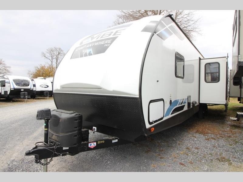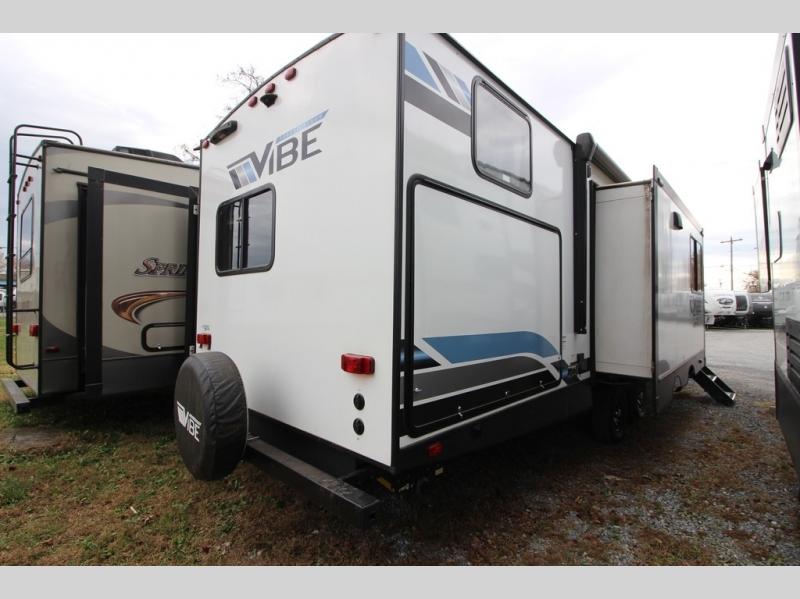 Each Vibe travel trailer by Forest River includes Hyper Lyte construction and a durable laminated "Aluma Frame" for years of use. The heated and enclosed underbelly allows you to extend your camping season, and the LED-lit exterior speakers will keep the party going as you grill outdoors and visit with family. Inside, you'll find LED lights to keep everything bright and open, a Bluetooth stereo, roller shades for your privacy, and many more amenities per region. These models also include cable and satellite prep and a digital TV antenna with a booster so you can stay connected to the outside world if you choose. Make the easy choice and choose a Vibe travel trailer today!