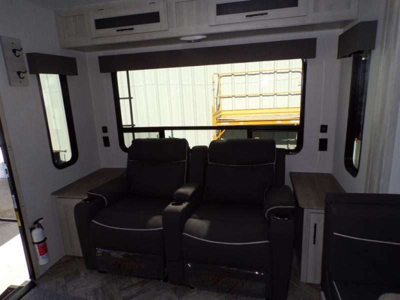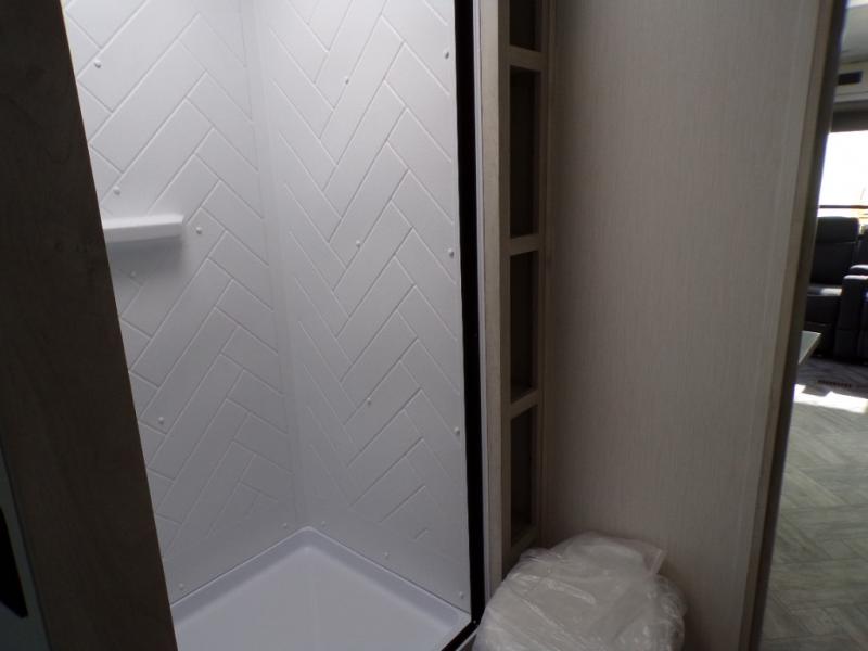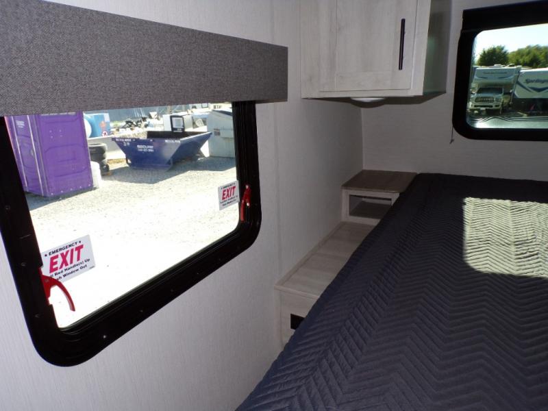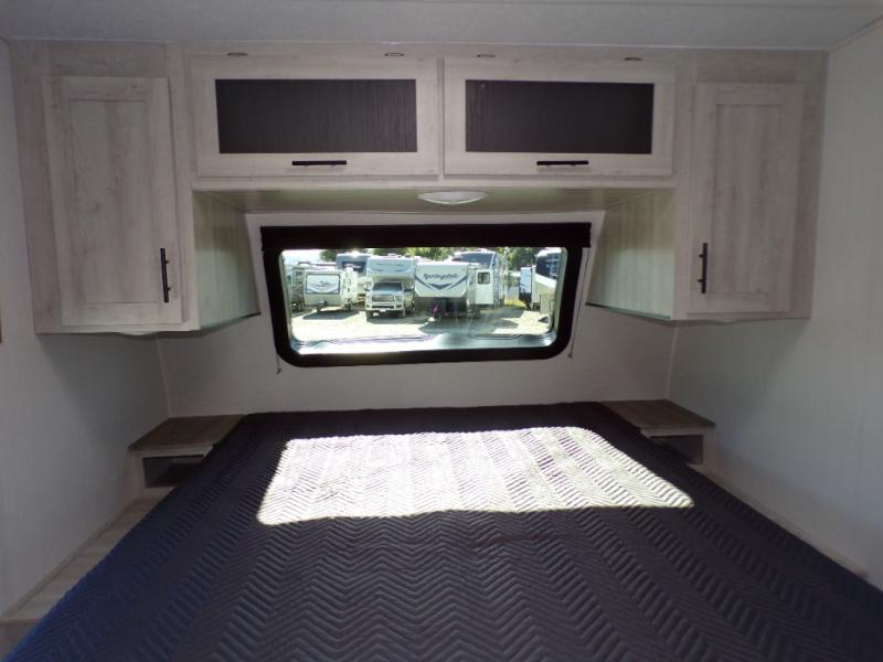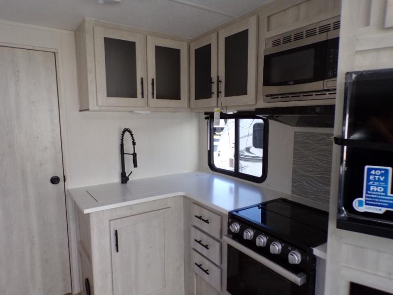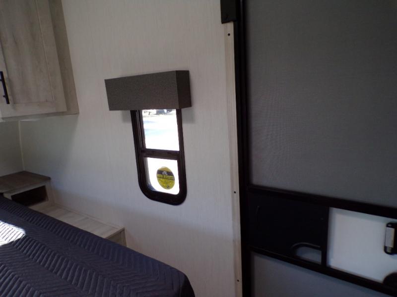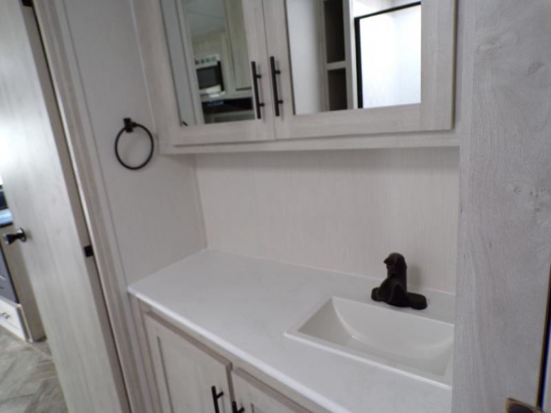 With any Wildcat fifth wheel or travel trailer by Forest River you will appreciate durable construction, including a Maxx strong laminated aluminum floor on the travel trailers, and underbelly armor on the fifth wheels. The Maxx insulation package includes high-density block foam insulation, two 30 lb. LP tanks, and a 35,000 BTU furnace to keep you comfortable year around. Some of the interior comforts you are sure to appreciate are the bedroom reading lights on both sides of the bed, the foot pedal flush toilet in the bath, the Rose Gold door and drawer hardware, and more!