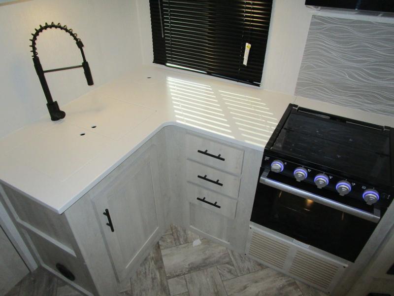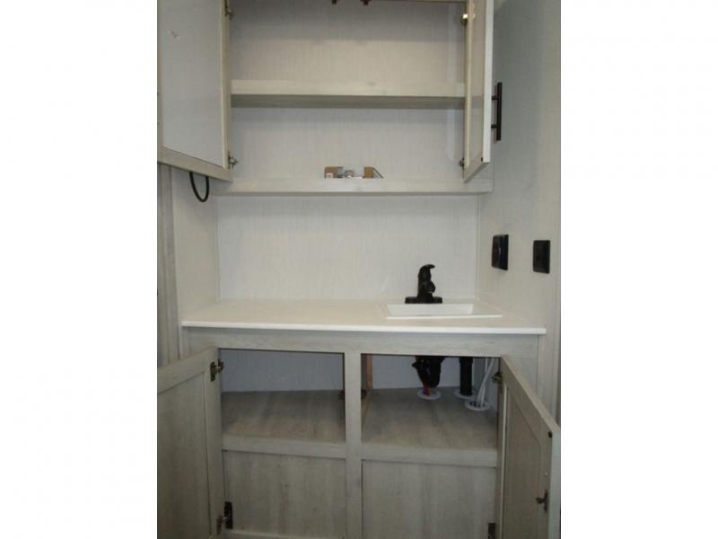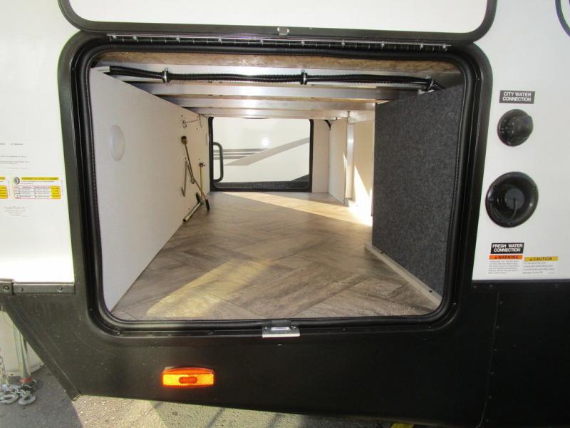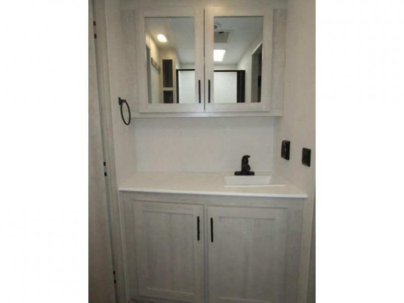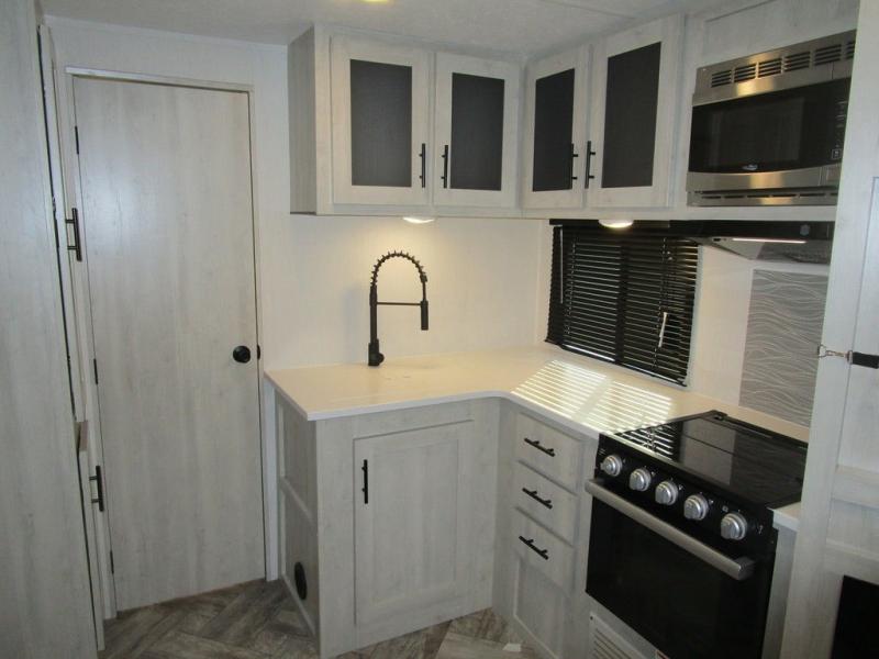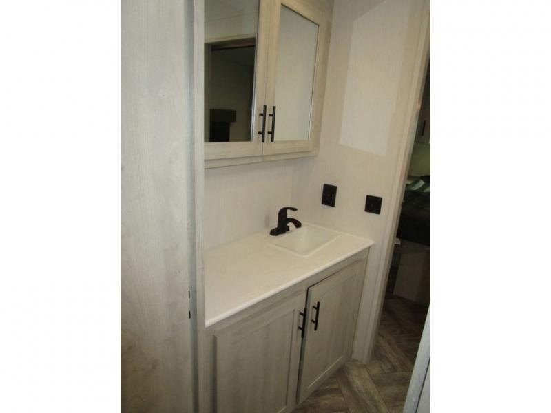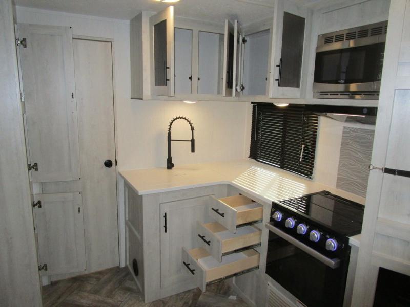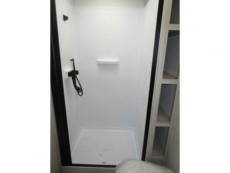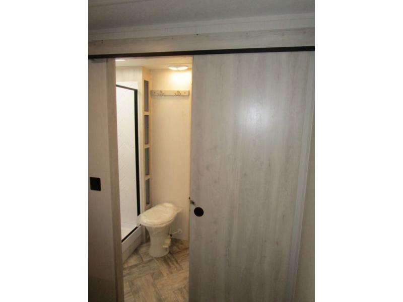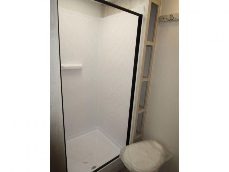 With any Wildcat fifth wheel or travel trailer by Forest River you will appreciate durable construction, including a Maxx strong laminated aluminum floor on the travel trailers, and underbelly armor on the fifth wheels. The Maxx insulation package includes high-density block foam insulation, two 30 lb. LP tanks, and a 35,000 BTU furnace to keep you comfortable year around. Some of the interior comforts you are sure to appreciate are the bedroom reading lights on both sides of the bed, the foot pedal flush toilet in the bath, the Rose Gold door and drawer hardware, and more!