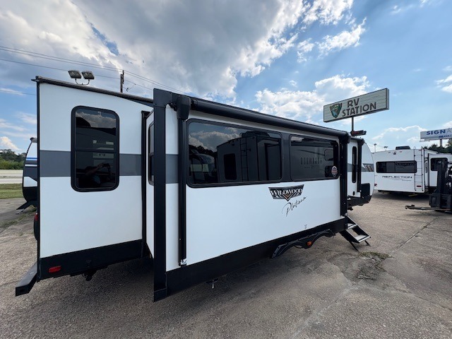 Forest River offers you the highest quality and the best components in its Wildwood travel trailer! The fully walkable one-piece roof is ultra reliable, and the rest of the construction is just as dependable with the powder-coated I-beam frame, cambered chassis, R-7 fiberglass insulation, nitrogen-filled tires, and triple-seal slide-out system. The Wildwood is not only full of quality, but it is also full of style with its new Tuscan Villa upgraded flooring pattern, upgraded designer furniture, mirrored front fireplace, and seamless countertops. The Wildwood also comes with some extra features that will make your life more comfortable, like the exterior speakers, the tablet-compatible USB ports, a residential inspired bathroom vanity, extra large panoramic windows, and so much more.