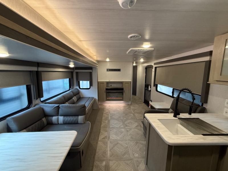 Forest River offers you the highest quality and the best components in its Wildwood travel trailer! The fully walkable one-piece roof is ultra reliable, and the rest of the construction is just as dependable with the powder-coated I-beam frame, cambered chassis, R-7 fiberglass insulation, nitrogen-filled tires, and triple-seal slide-out system. The Wildwood is not only full of quality, but it is also full of style with its new Tuscan Villa upgraded flooring pattern, upgraded designer furniture, mirrored front fireplace, and seamless countertops. The Wildwood also comes with some extra features that will make your life more comfortable, like the exterior speakers, the tablet-compatible USB ports, a residential inspired bathroom vanity, extra large panoramic windows, and so much more.