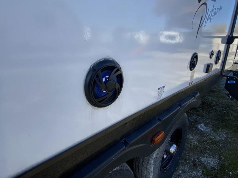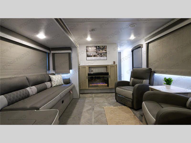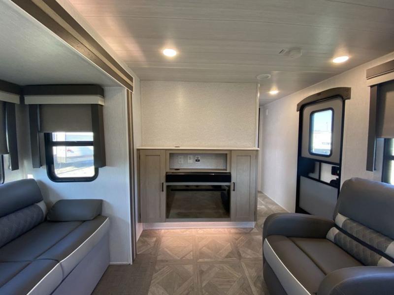 Forest River offers you the highest quality and the best components in its Wildwood travel trailer! The fully walkable one-piece roof is ultra reliable, and the rest of the construction is just as dependable with the powder-coated I-beam frame, cambered chassis, R-7 fiberglass insulation, nitrogen-filled tires, and triple-seal slide-out system. The Wildwood is not only full of quality, but it is also full of style with its new Tuscan Villa upgraded flooring pattern, upgraded designer furniture, mirrored front fireplace, and seamless countertops. The Wildwood also comes with some extra features that will make your life more comfortable, like the exterior speakers, the tablet-compatible USB ports, a residential inspired bathroom vanity, extra large panoramic windows, and so much more.