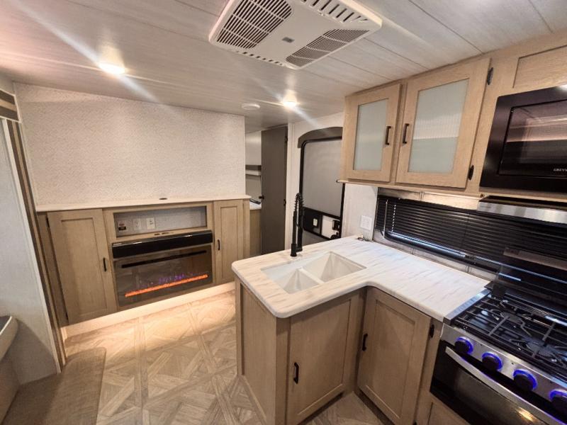 Forest River offers you the highest quality and the best components in its Wildwood travel trailer! The fully walkable one-piece roof is ultra reliable, and the rest of the construction is just as dependable with the powder-coated I-beam frame, cambered chassis, R-7 fiberglass insulation, nitrogen-filled tires, and triple-seal slide-out system. The Wildwood is not only full of quality, but it is also full of style with its new Tuscan Villa upgraded flooring pattern, upgraded designer furniture, mirrored front fireplace, and seamless countertops. The Wildwood also comes with some extra features that will make your life more comfortable, like the exterior speakers, the tablet-compatible USB ports, a residential inspired bathroom vanity, extra large panoramic windows, and so much more.